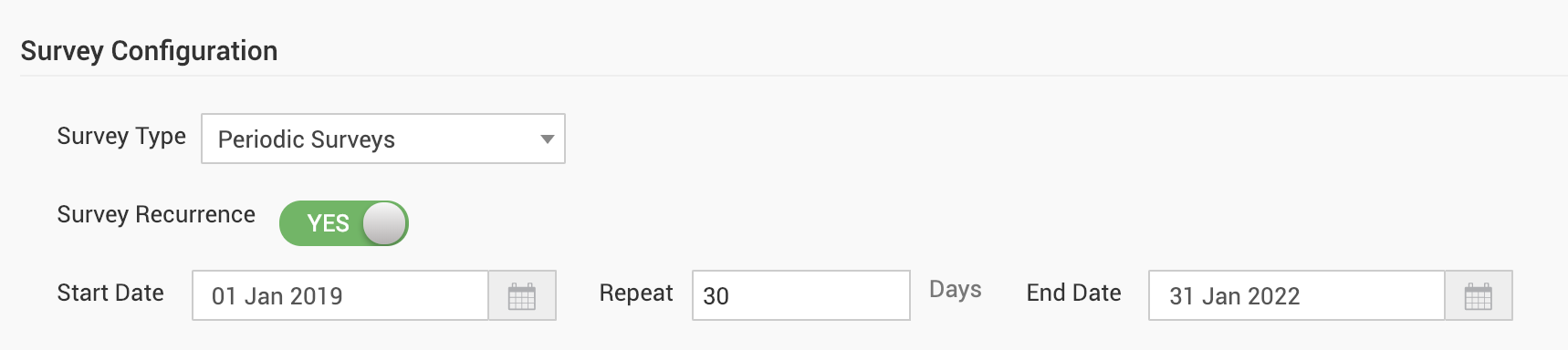 • Select Survey Recurrence, then specify date limit and survey frequency.