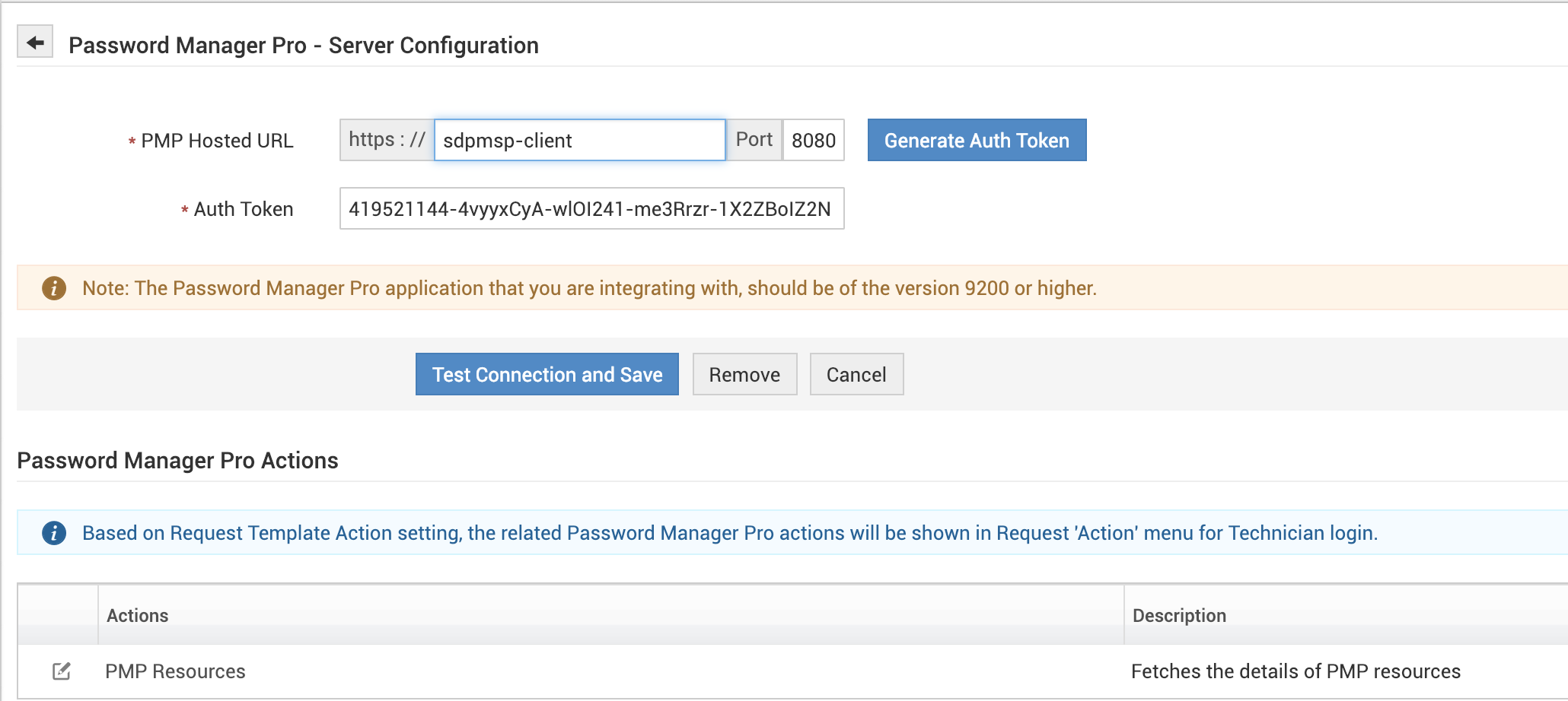 Click Test Connection and Save to establish a connection between ServiceDesk Plus MSP and Password Manager Pro servers. Once the connection is established, PMP configuration in