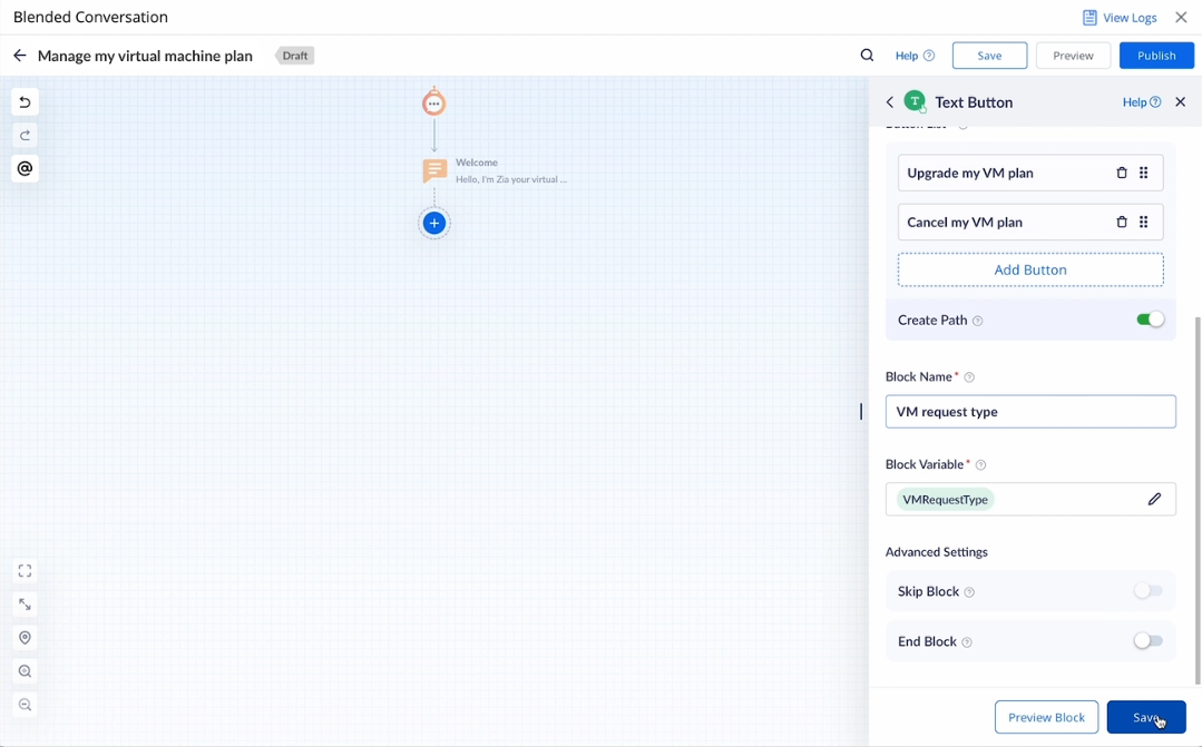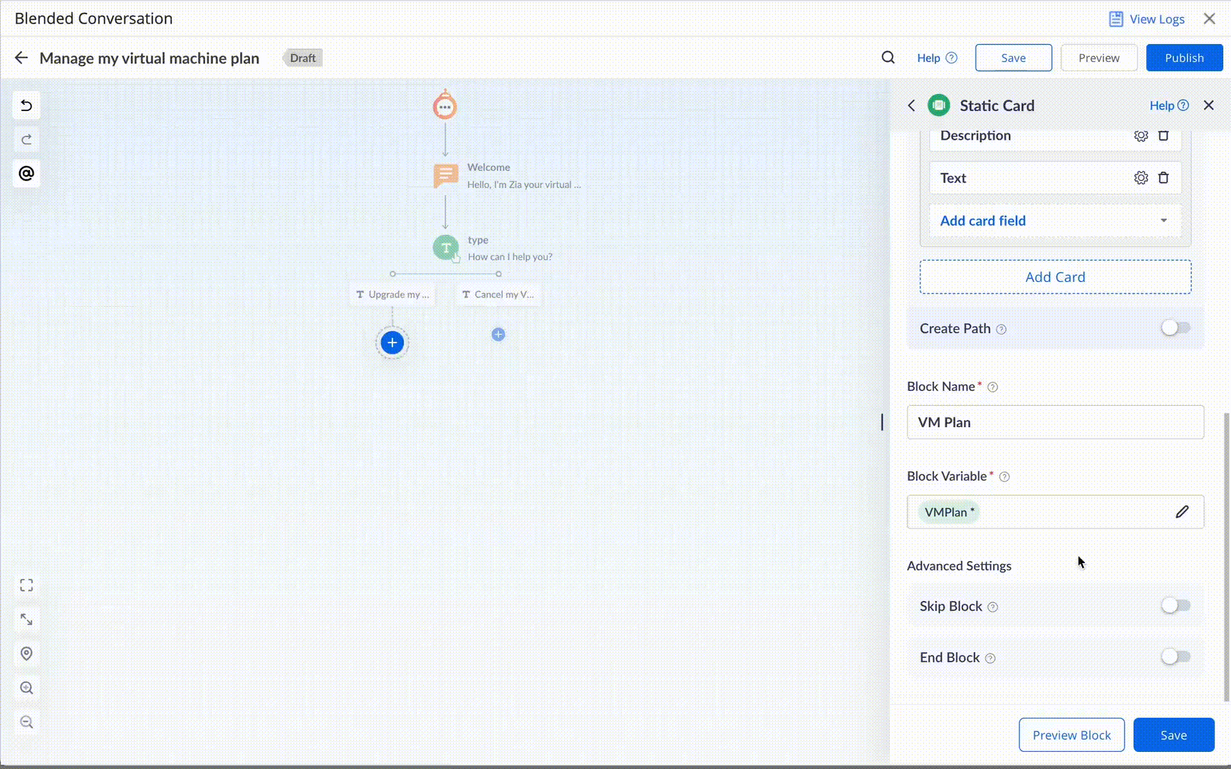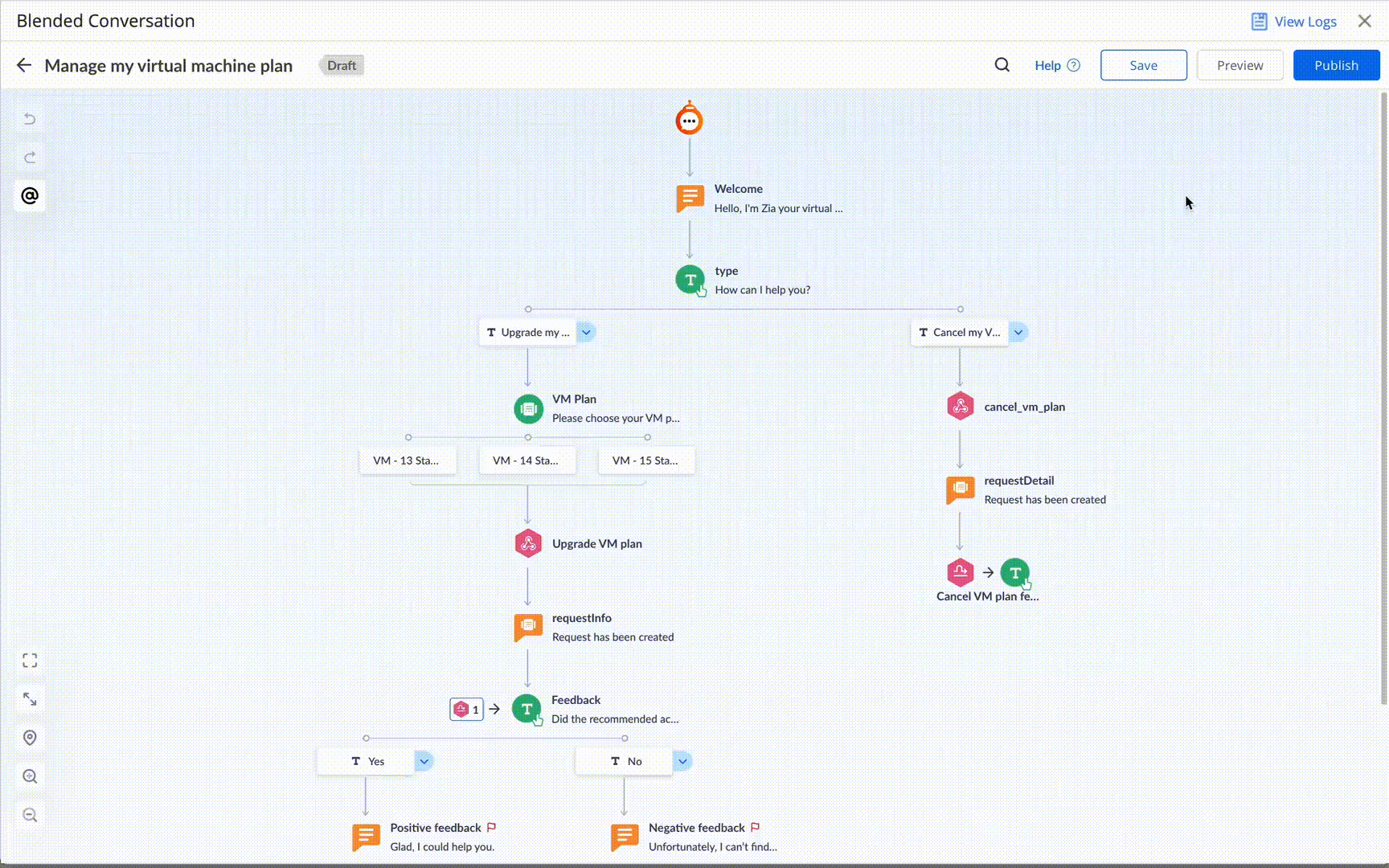 Read detailed, step-by-step instructions to configure Zia's Blended Conversations.