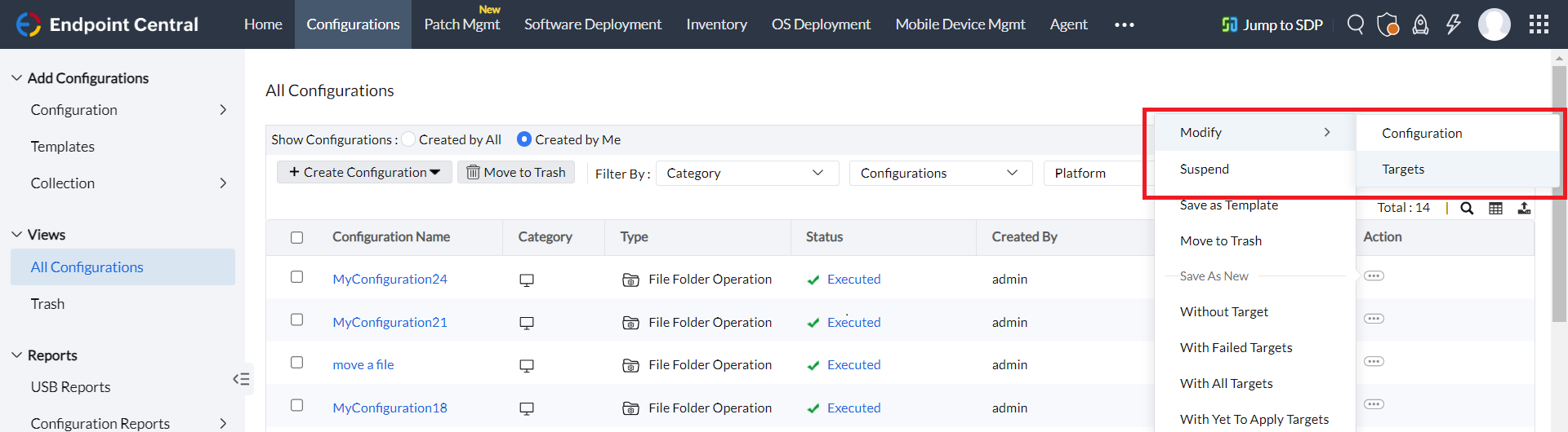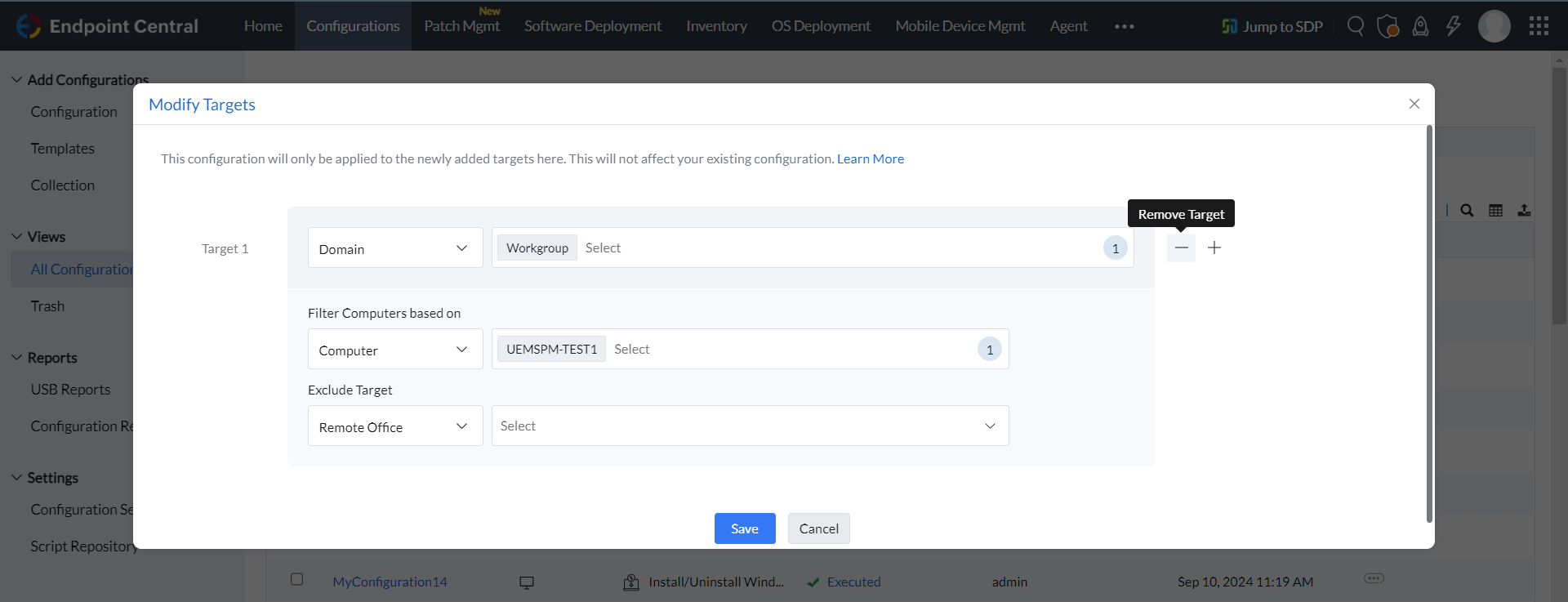 - Select Modify > Targets and do the necessary changes as required and click Save to modify the Target.