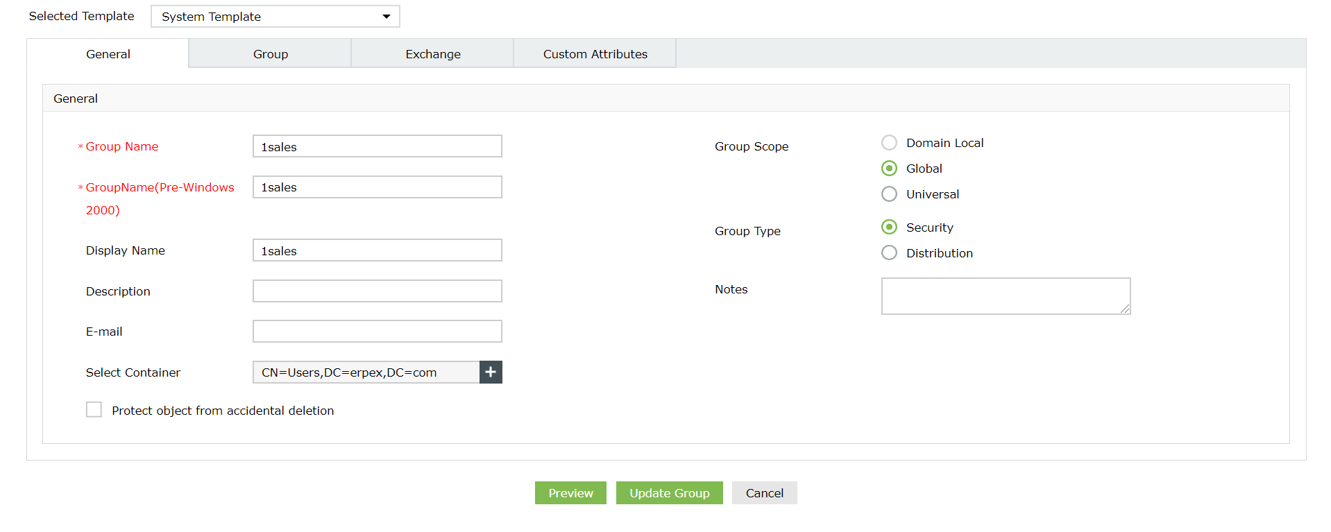 Можно настроить свойства Exchange для групп во время их создания или изменения. Это позволит настроить адрес электронной почты, псевдонимы электронной почты, ограничения доставки и многое другое для групп в Active Directory. Загрузите бесплатную пробную версию этого программного обеспечения, чтобы подробно изучить все функции управления группами.