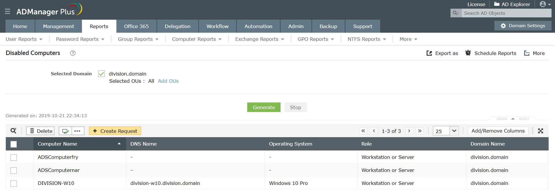 В отличие от инструментов Active Directory, PowerShell и других, ADManager Plus предоставляет следующие готовые отчеты о компьютере, которые можно создавать и экспортировать как автоматически, так и по запросу:
