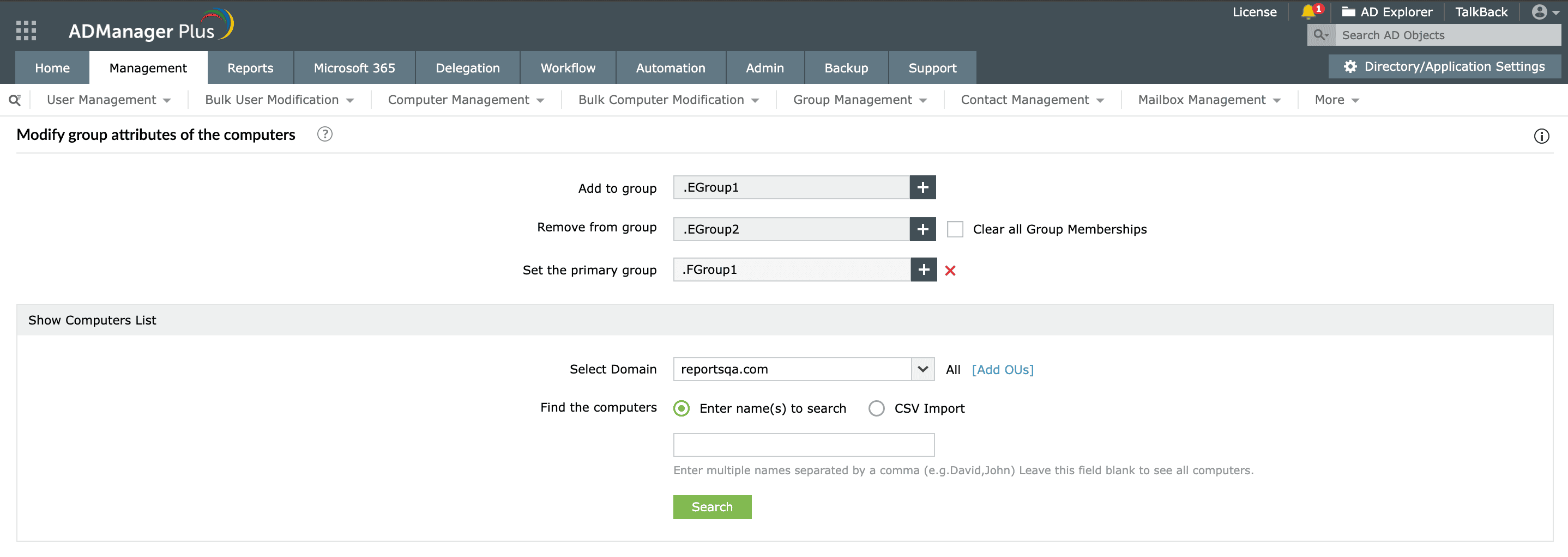 ADManager Plus позволяет без труда изменять объекты компьютеров AD.
