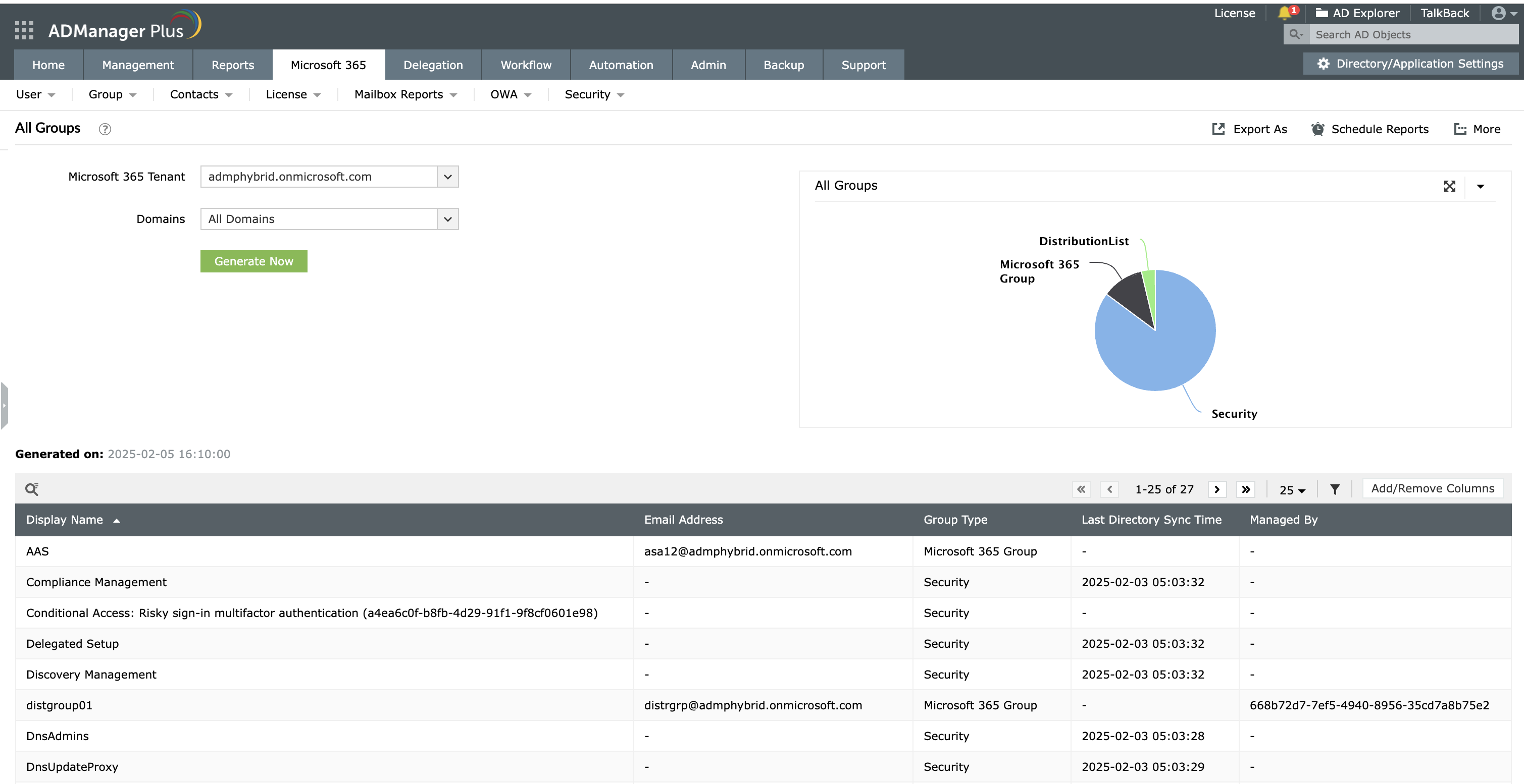 В этой статье описывается процедура использования PowerShell для составления списка участников группы рассылки в Exchange Online или Office 365 и их экспорта в CSV с помощью командлета Get-DistributionGroupMembers. Также предлагается сравнение с шагами, необходимыми для выполнения этого с помощью ADManager Plus, унифицированного инструмента управления и создания отчетов Active Directory, Office 365 и Exchange, чтобы показать, как это решение помогает получить список групп рассылки и с легкостью экспортировать его.