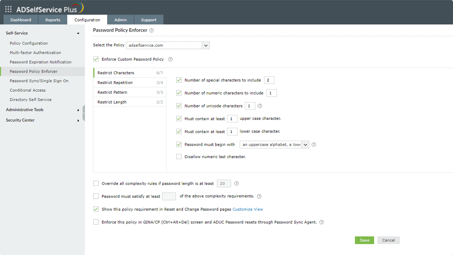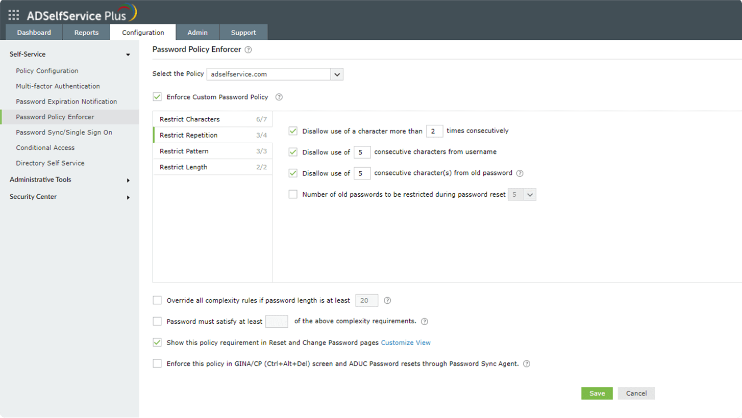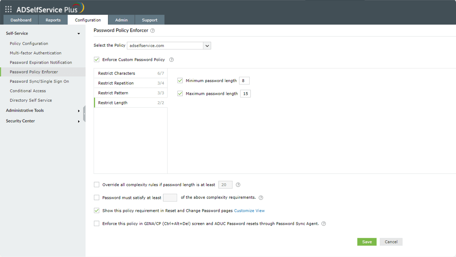 Средство принудительного применения политики паролей ADSelfService Plus дает следующие преимущества: