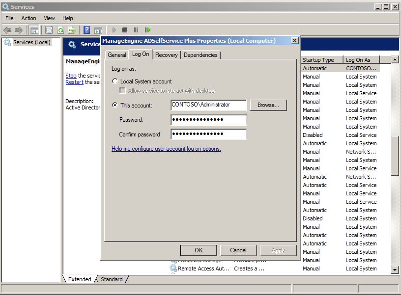 Примечание: После установки в качестве службы ADSelfService Plus будет использовать привилегии системной учетной записи.