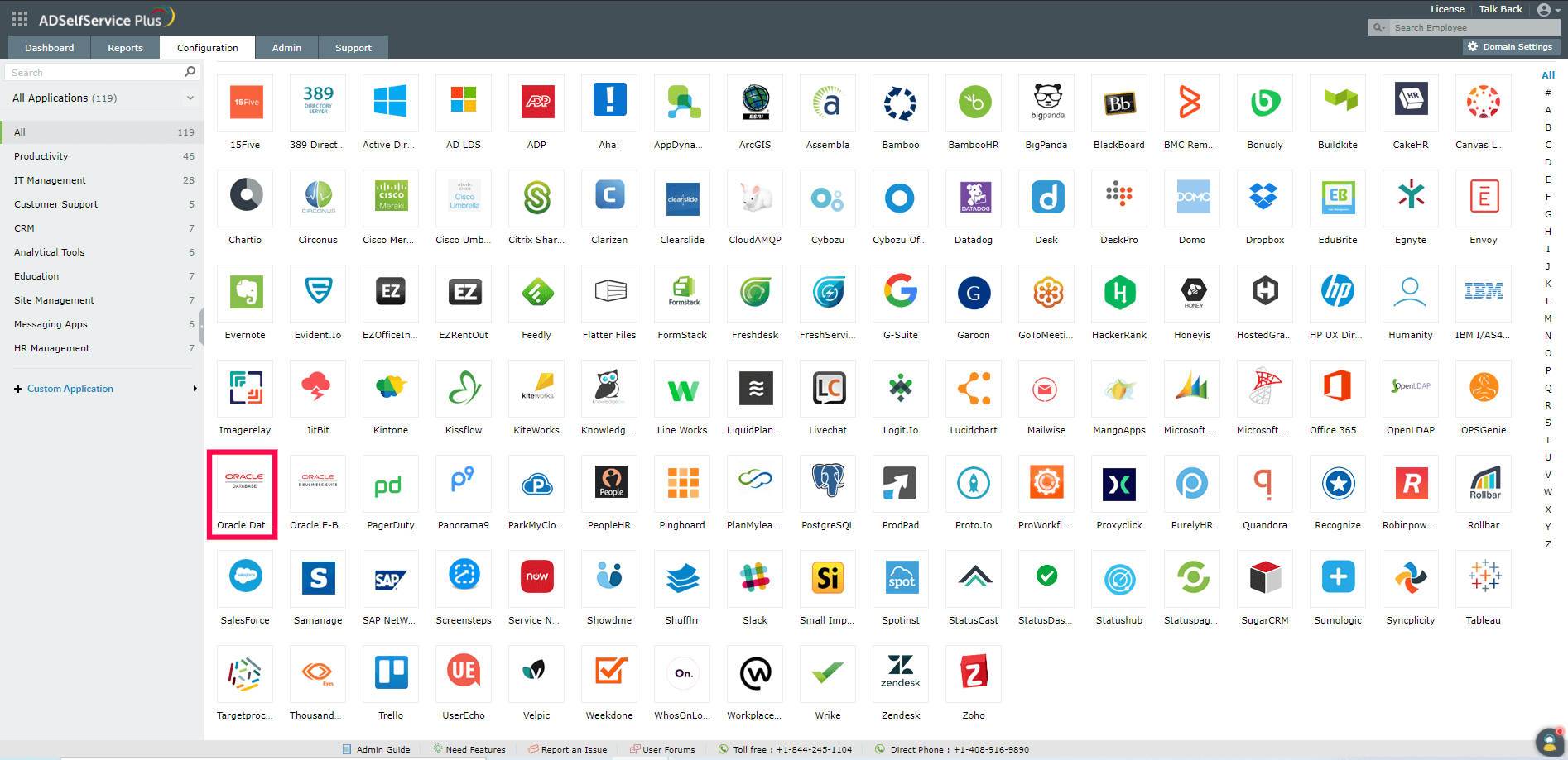 ADSelfService Plus помогает сократить количество проблем, связанных с паролями, гарантируя, что пользователи могут использовать один и тот же набор учетных данных для разных приложений. Благодаря функции синхронизации паролей в реальном времени в ADSelfService Plus пароли учетных записей пользователей Oracle Database обновляются каждый раз при изменении или сбросе их паролей AD.