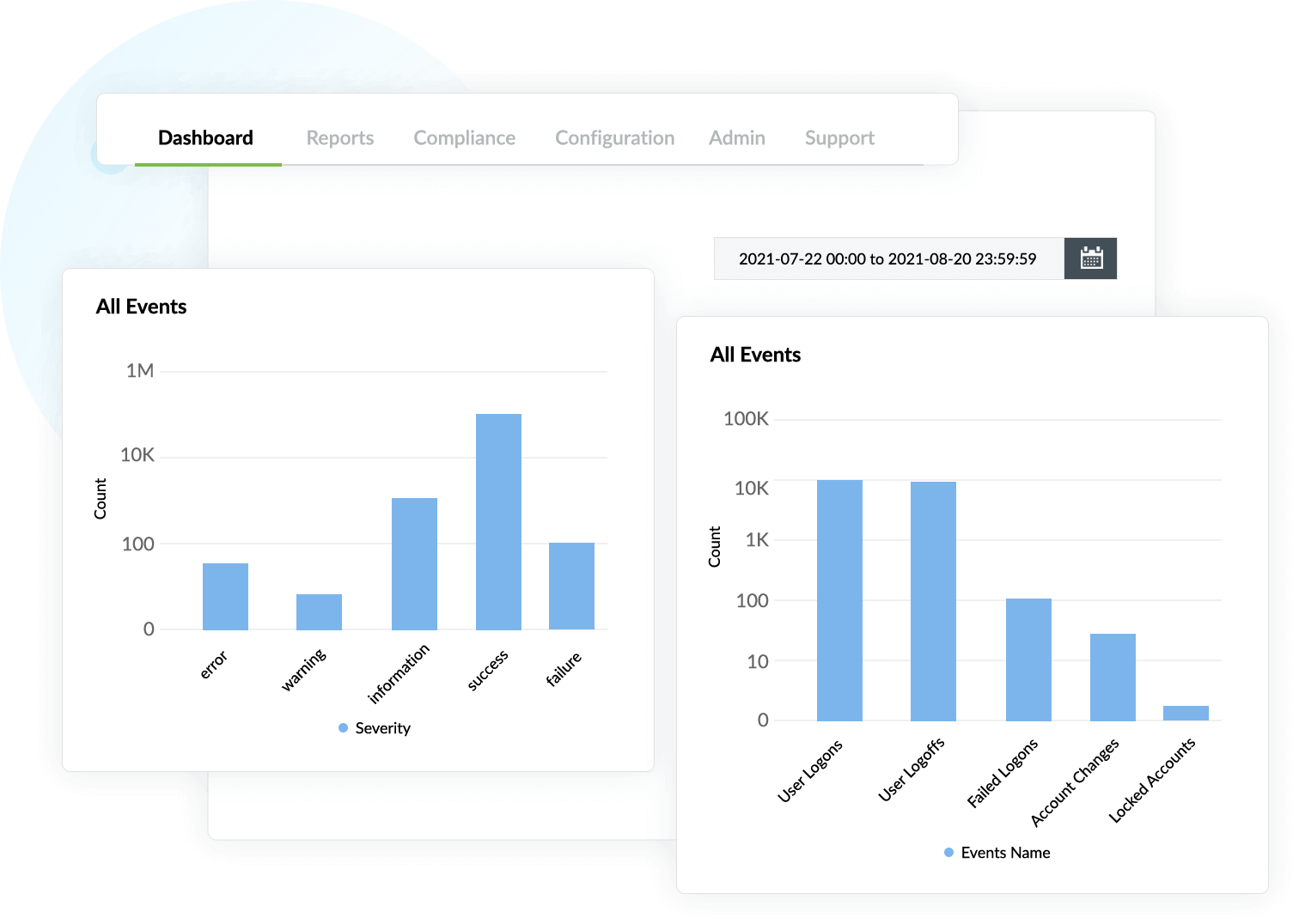 Log360 är utrustad för att granska fysiska, virtuella och molnbaserade miljöer. Det erbjuder enkel säkerhets- och efterlevnadshantering för Windows- och Linux-servrar, Hyper-V-maskiner, Azure och Amazon-molnplattformar, vilket hjälper till att skala din miljö.