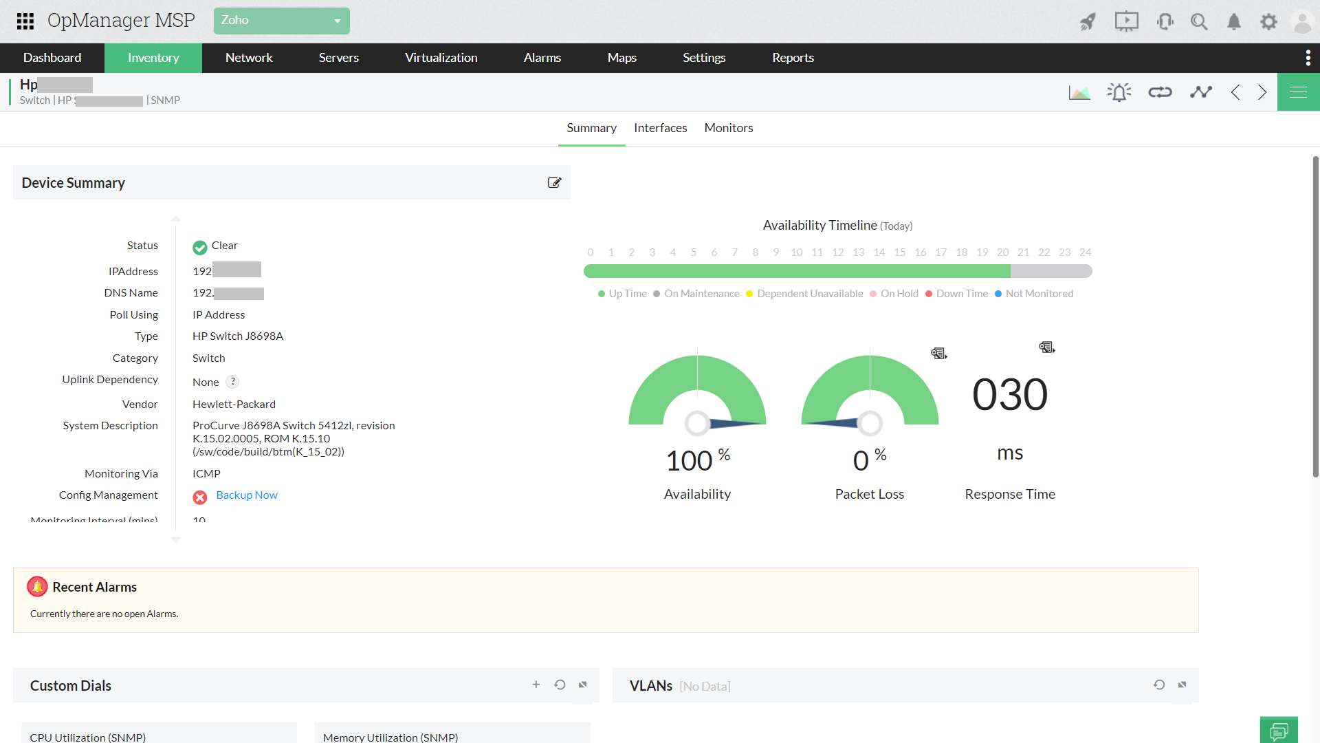 OpManager MSP är en programvara för nätverksövervakning med flera klienter som låter dig övervaka flera kunders nätverk med avseende på prestanda, tillgänglighet och hälsa. Med SNMP/WMI kan du övervaka viktiga prestandamått för nätverksenheter från flera leverantörer, t.ex. routrar, switchar och servrar.