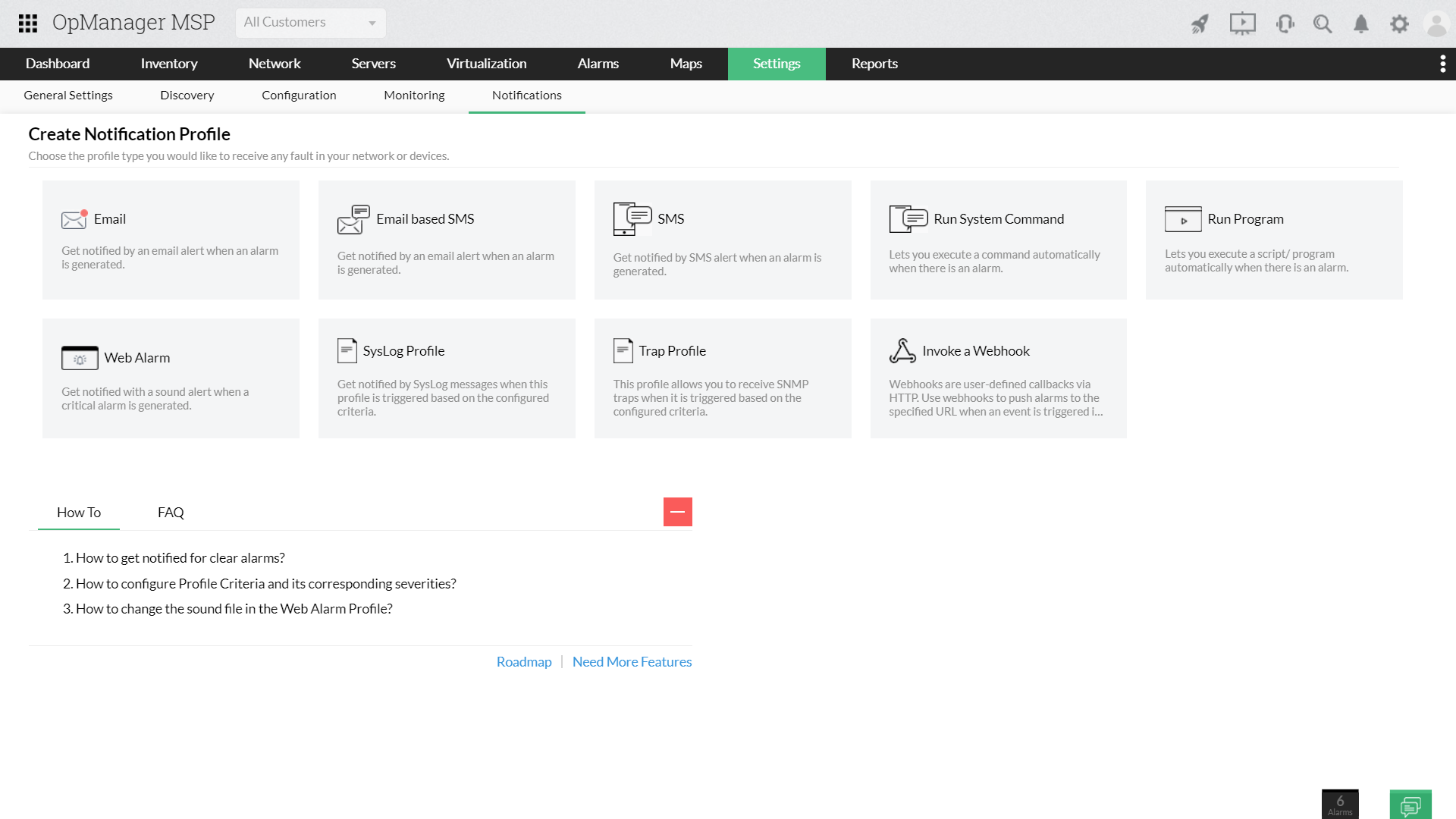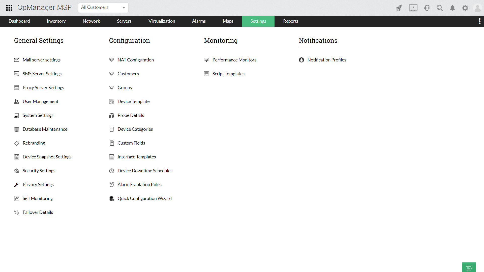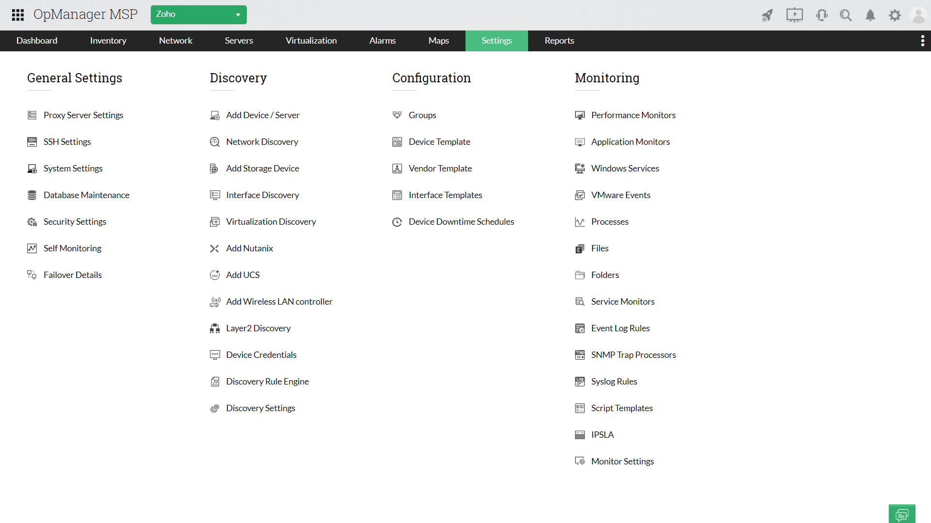 Med OpManager MSPs stödsystem för flera klienter kan du göra följande: