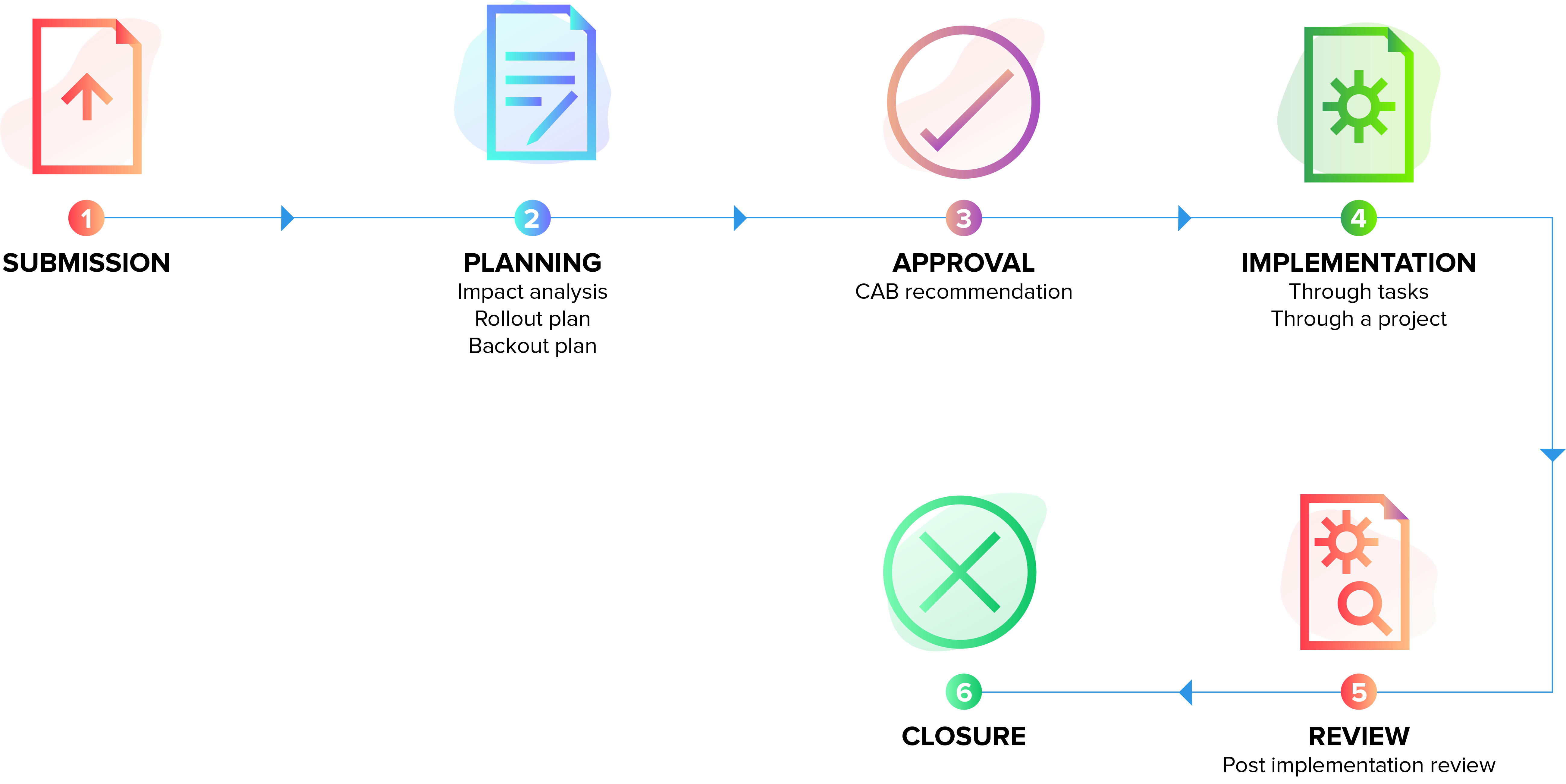 En systematisk process för ändringshantering hjälper din organisation att implementera förändringar fria från incidenter med hög framgångsgrad.