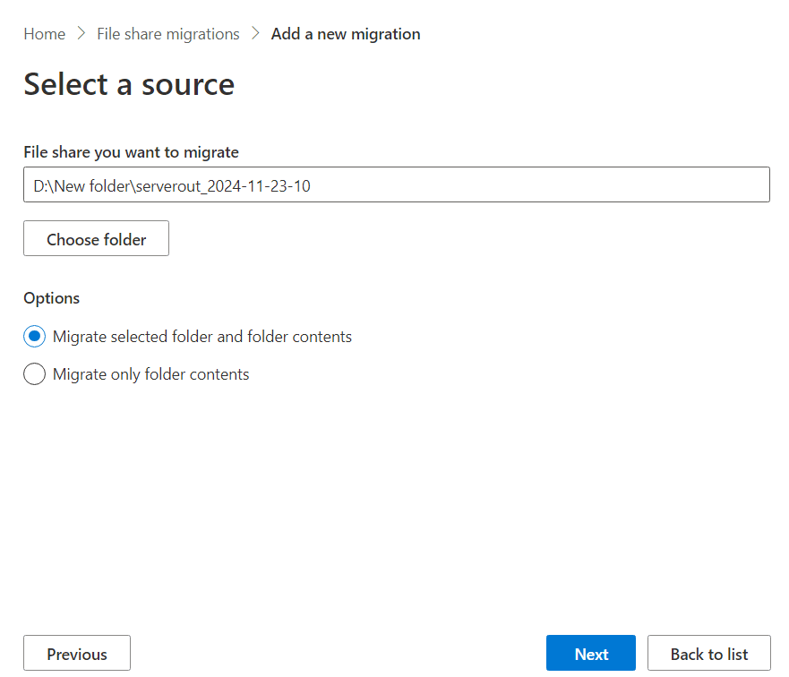- step 3 Select the source folder that you'd like to migrate and choose if you'd like to migrate the folder or only the contents inside the folder. Click Next.