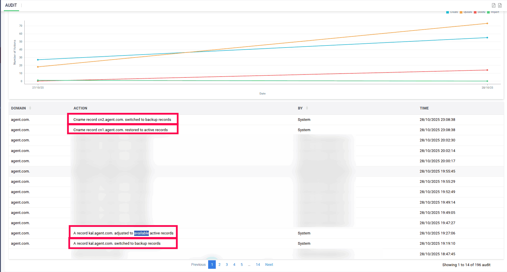 การปรับเปลี่ยน Record ไปยัง Active records ที่พร้อมใช้งาน การสลับไปยัง Backup Records หรือการกู้คืนกลับเป็น Active records ที่จะถูกแจ้งเตือนทั้งหมดในส่วนนี้ ช่วยให้ผู้ดูแลระบบมองเห็นและรับรู้การเปลี่ยนแปลงได้อย่างชัดเจน