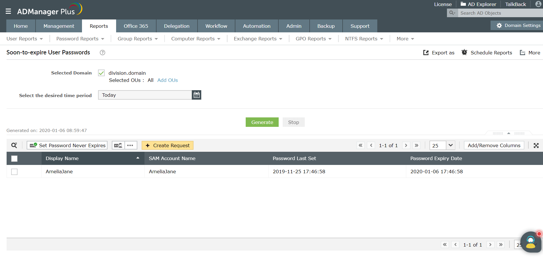 Süresi dolmak üzere olan parolalara sahip kullanıcıların raporunu oluşturma ve dışa aktarma