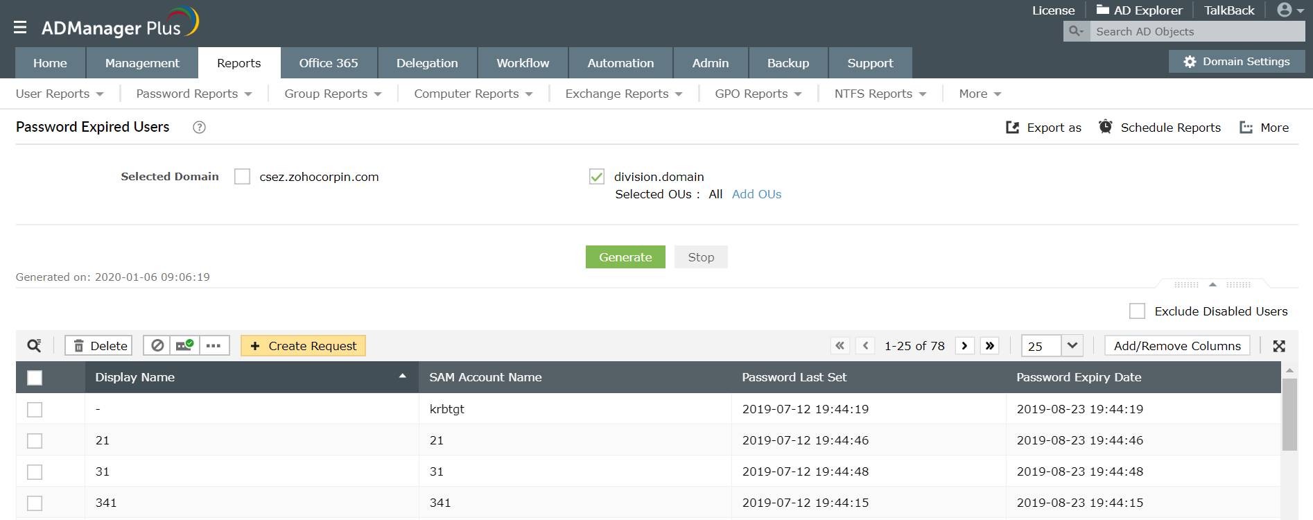 Parola süresi dolmuş kullanıcılar listesi raporunu oluşturma ve dışa aktarma