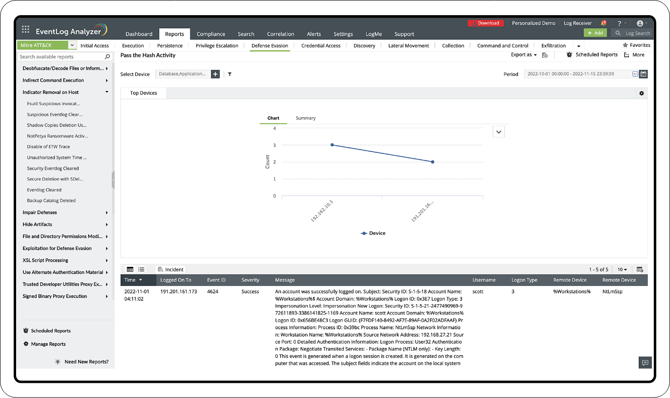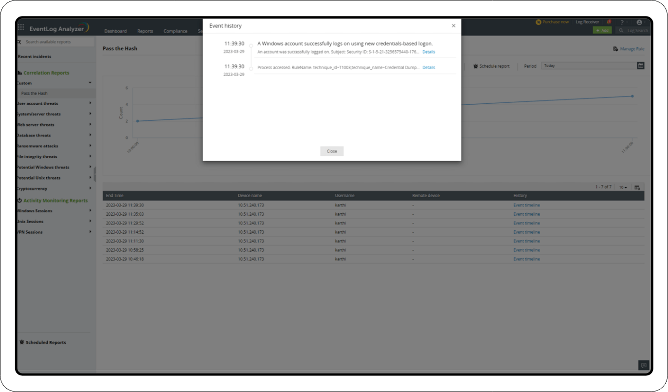 Log360, PtH gibi karmaşık saldırılar ile mücadele etmek için aşağıdaki gibi güvenlik özelliklerinden faydalanır: