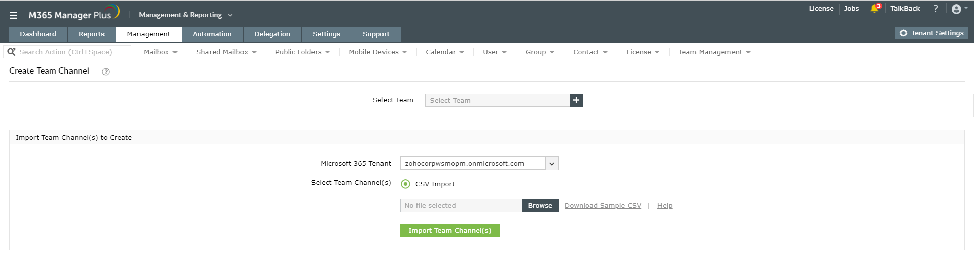 M365 Manager Plus kullanarak kanalları toplu olarak yönetme: