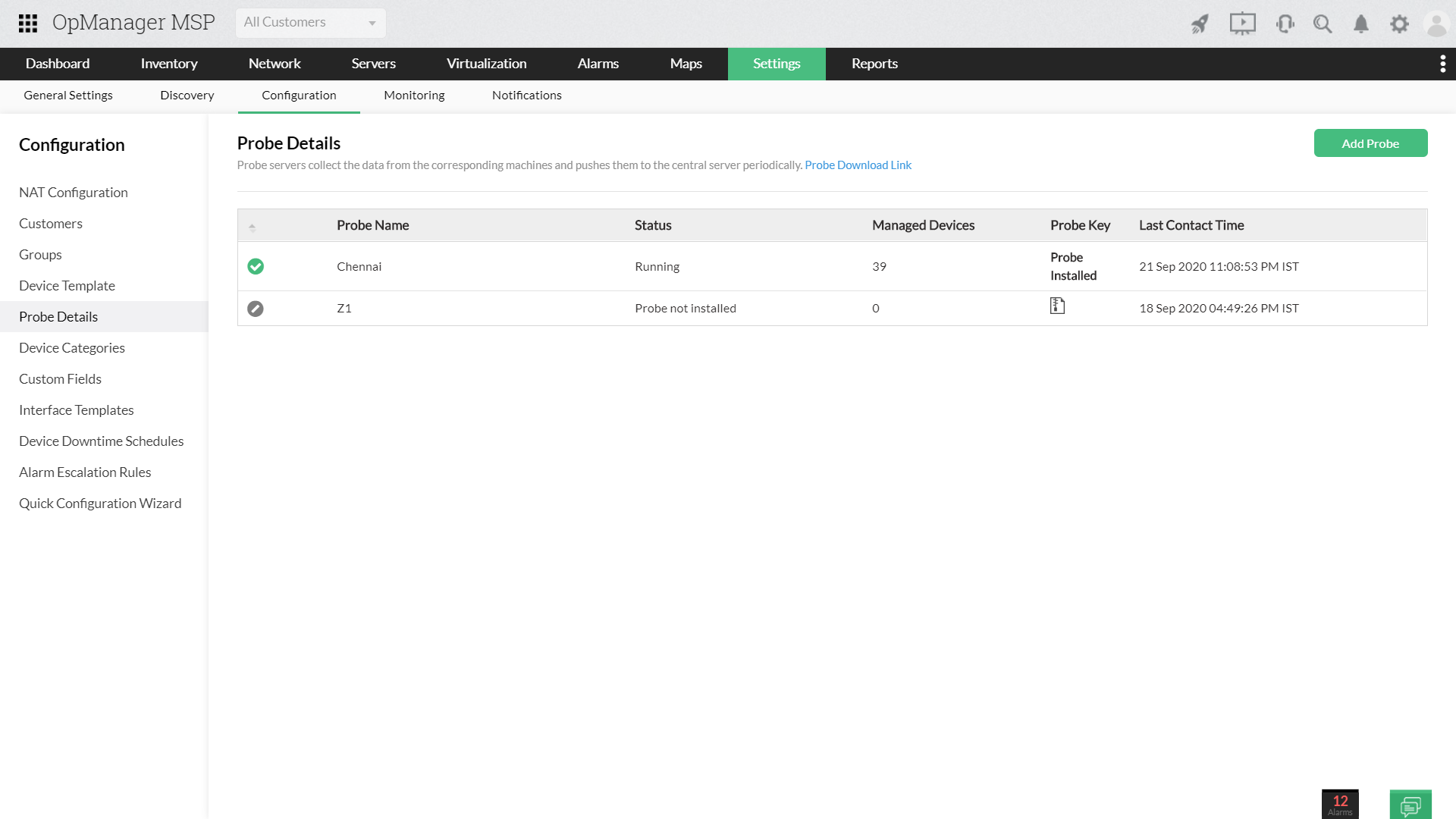 OpManager MSP'nin çok kiracılı yazılım mimarisi, birden fazla istemcinin ağ faaliyetlerinin tek bir merkezi konsoldan eş zamanlı olarak ele alınmasına yardımcı olur. Müşterileri ve probları merkezi sunucuya ekledikten sonra, müşterilerinizin ağlarındaki cihazları keşfetmeye ve izlemeye hemen başlayabilirsiniz. OpManager MSP, her müşterinin sahasında yerel bir yönetici bulundurma ihtiyacını ortadan kaldırır; tüm müşteri ağlarını uzaktan yönetebilirsiniz.