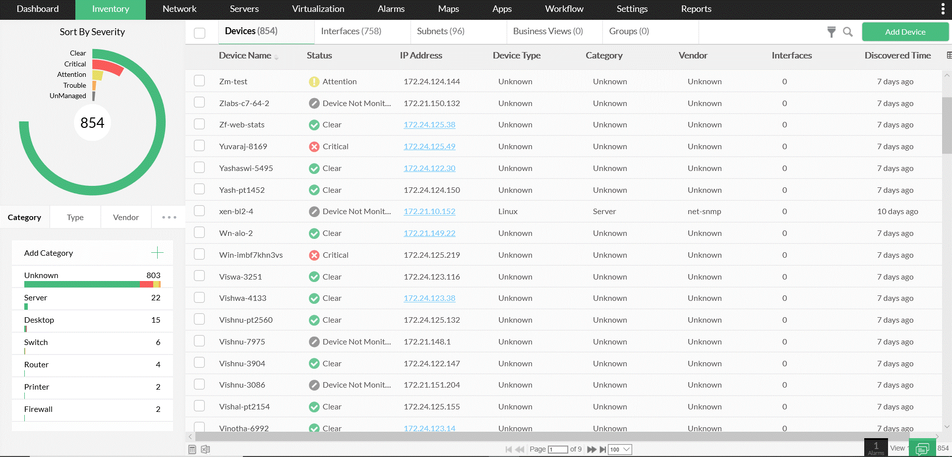 Ağ Anahtarı Port Haritalandırma Aracı ve STP Aracı gibi Gerçek Zamanlı Ağ Anahtarı İzleme Araçları OpManager ile birlikte gelir.