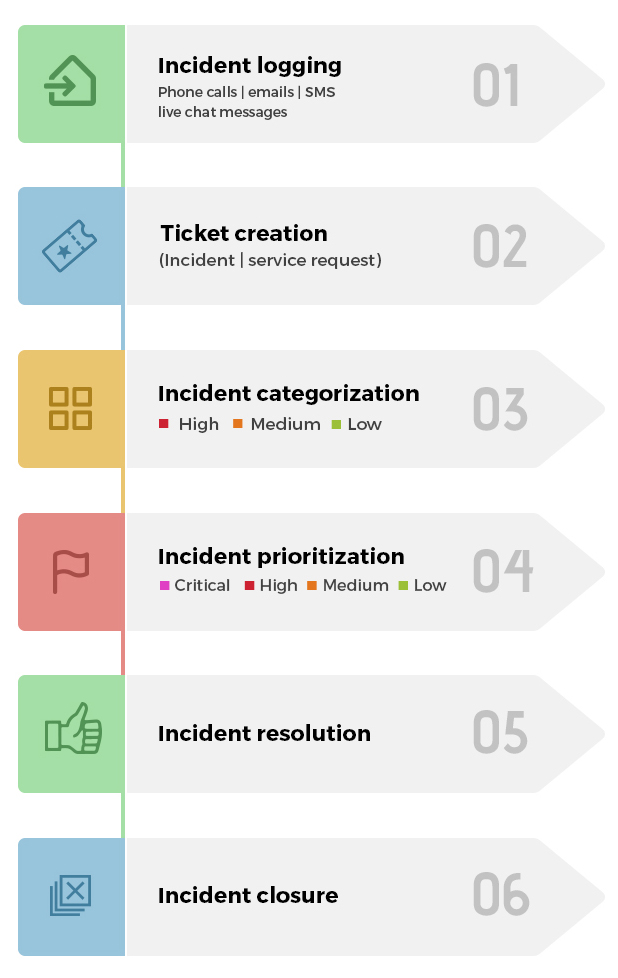 Olay yönetimindeki sonraki aşama olay kategorileştirmesi ve önceliklendirilmesidir. Bu gelen biletleri sıralamakla kalmaz aynı zamanda biletlerin sorunla ilgili en kalifiye teknisyenlere yönlendirilmesini de sağlar. Olay kategorizasyonu hizmet masası sistemine olaylara en uygun SLA'ları uygulamasında ve son kullanıcılarla o öncelikler hakkında iletişim kurmaya da yardımcı olur. Bir olay kategorize edildiğinde ve önceliklendirildiğinde teknisyenler olayı tanılayabilir ve son kullanıcıya bir çözüm sağlayabilir.