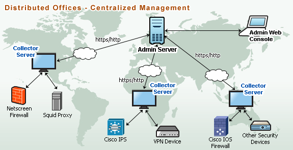 OpManager Plus 中的防火墻模組為受控安全服務提供者 (MSSP) 提供可盈利的受控防火牆服務,您可以從單一的集中式 OpManager Plus 安裝來管理多個客戶網站防火牆。您可以收集、分析、封存和生成客戶防火牆報表,這將有助於您衡量頻寬使用情況、追蹤入侵情況、偵測異常情況、管理使用者網站存取權限、稽核流量並封存記錄以進行合規性稽核。
