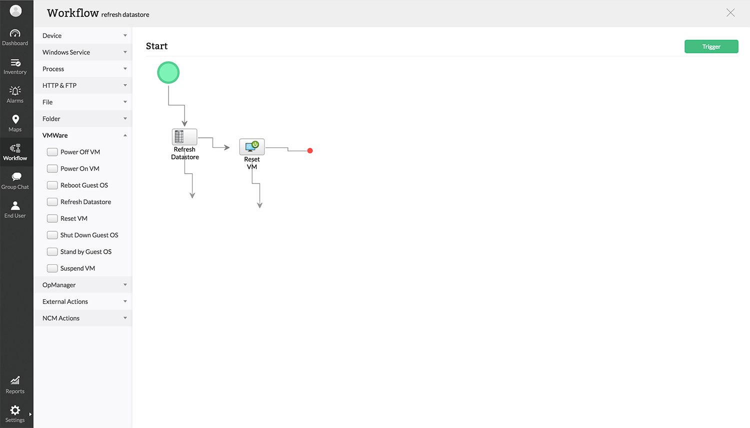 一些伺服器管理工作可以透過 OpManager 工作流自動執行: