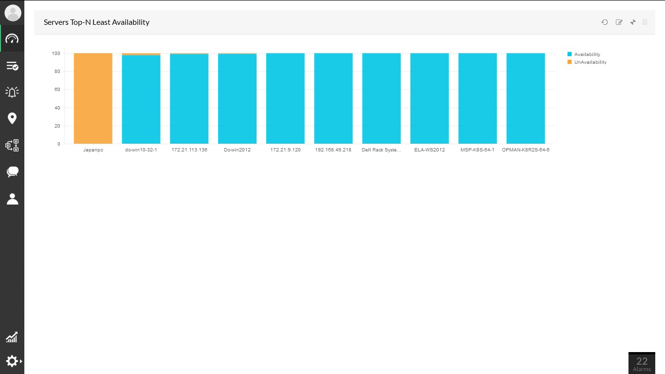 主動監視伺服器的可用性和回應時間,對於伺服器管理至關重要。作為受信任的網路和伺服器管理軟體,OpManager 主動監視 300 多項關鍵伺服器效能指標,如 CPU 使用率、磁碟使用率、分區記憶體使用率等,同時監視服務和process。OpManager 的錯誤監視包括基於臨界值的警示和伺服器可用性與健康狀況的通知。