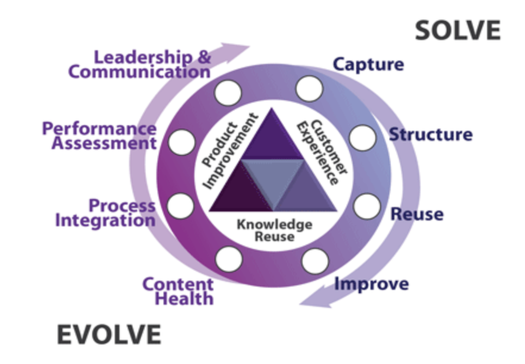 One loop—the Solve Loop—focuses on the knowledge sharing activities that happen in the workflow, and the second loop—the Evolve Loop—ensures the continuing improvement and commitment to the knowledge management efforts.