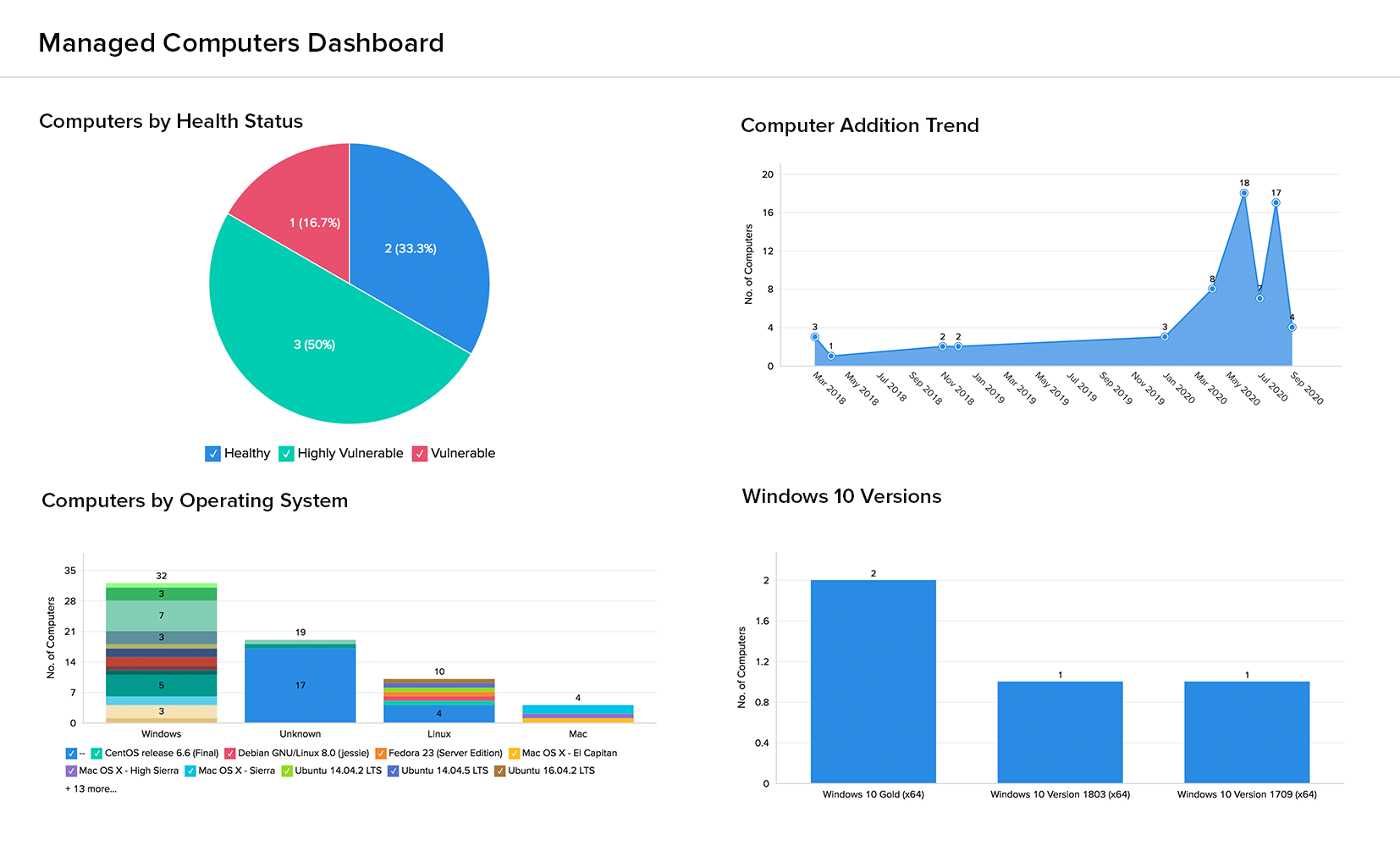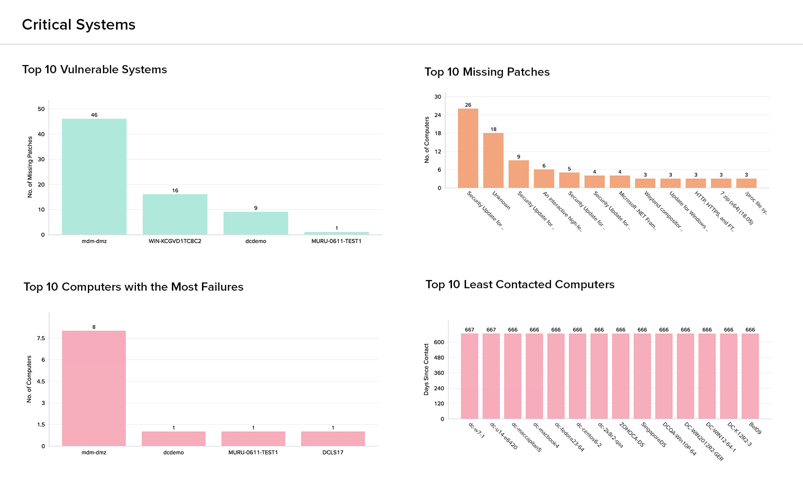 Track systems with vulnerabilities and missing patches as well as computers that frequently fail or miss regular scans, and apply timely patches to defend your systems.