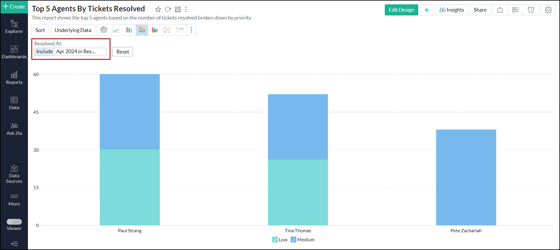 The selected report will open in a new tab with filters applied according to the chosen data point.