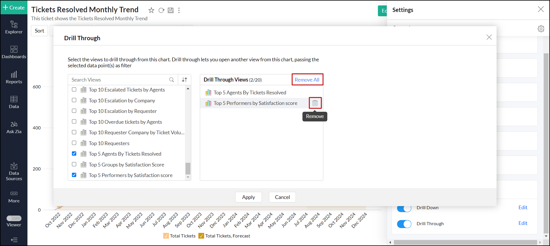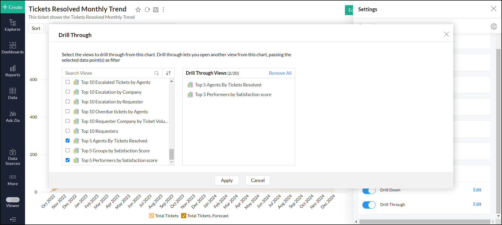 While sharing views, Analytics Plus allows report owners to enable the Drill Through option, granting other users the ability to drill through the related views.