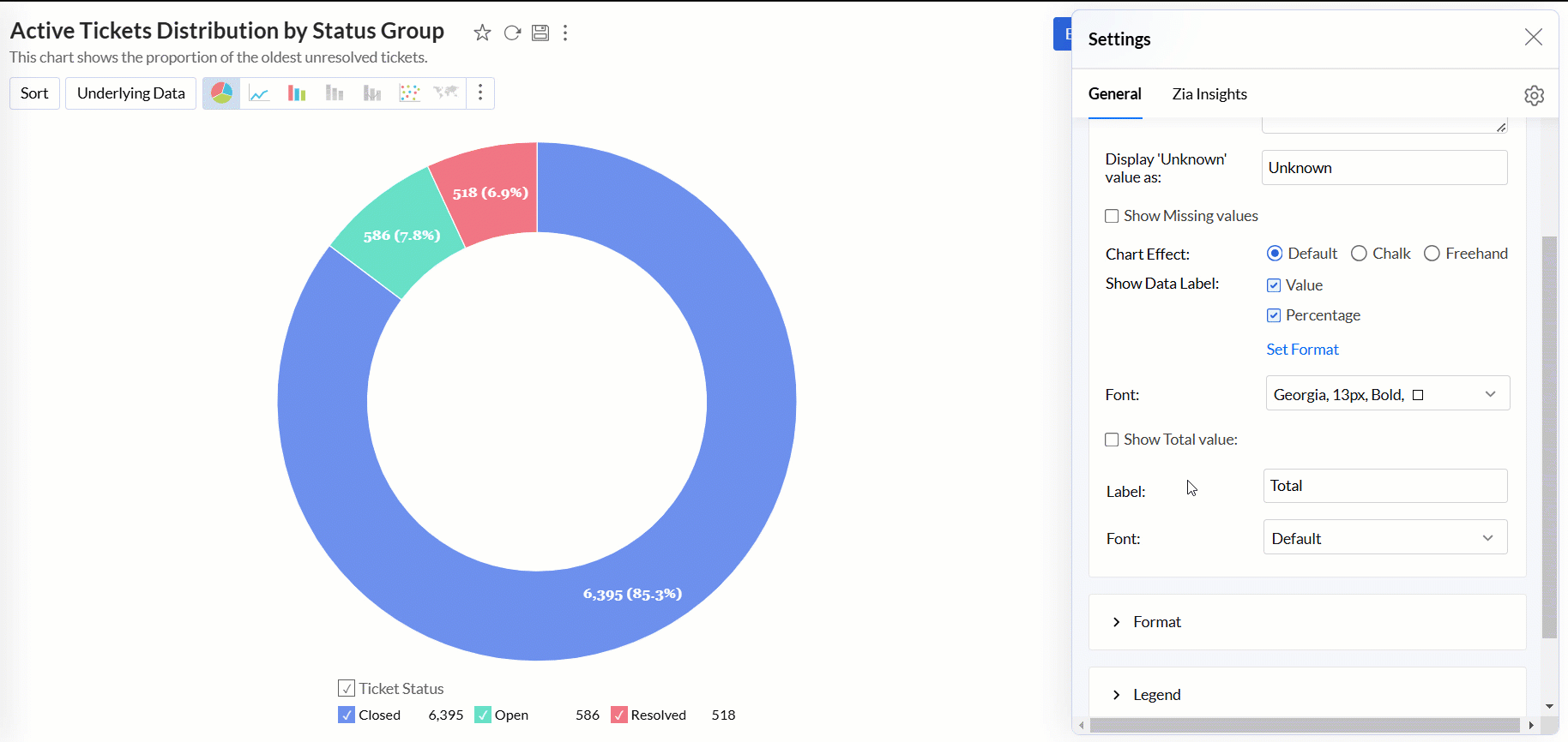- Legend Style: Specify whether to display the legend items with or without the corresponding values. You can also customize the format to display data using the Format link.