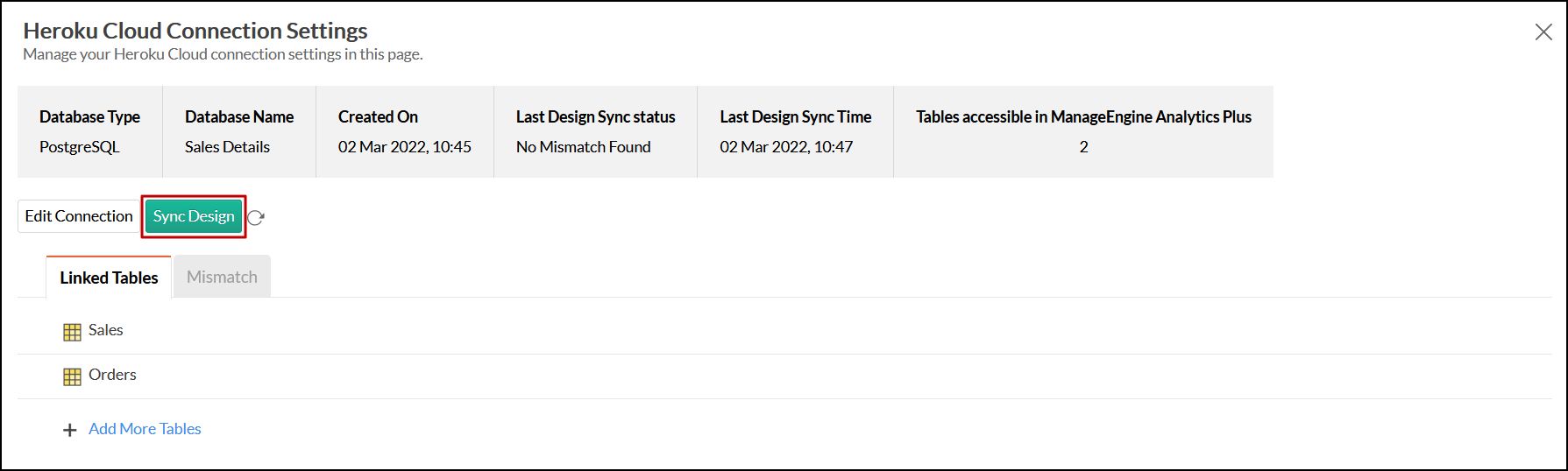 Note: If there are any mismatches, you will not be able to add new tables. The mismatches need to be resolved first. Click here to know more about resolving mismatches.
