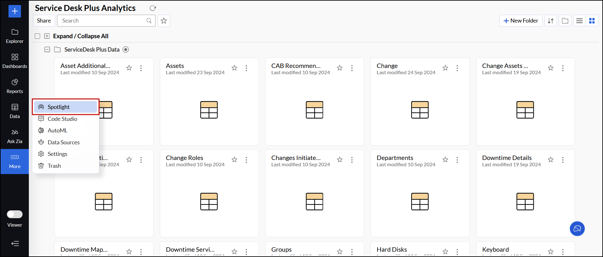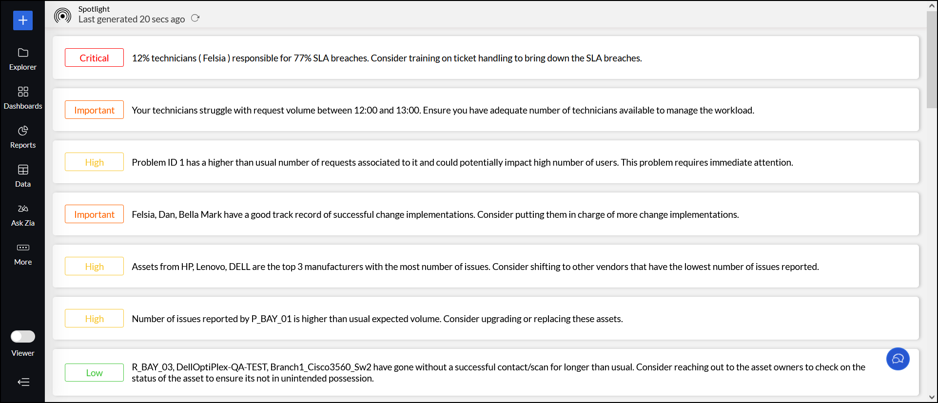 Spotlight currently works on data from ManageEngine ServiceDesk Plus Cloud and will soon extend to support other applications.