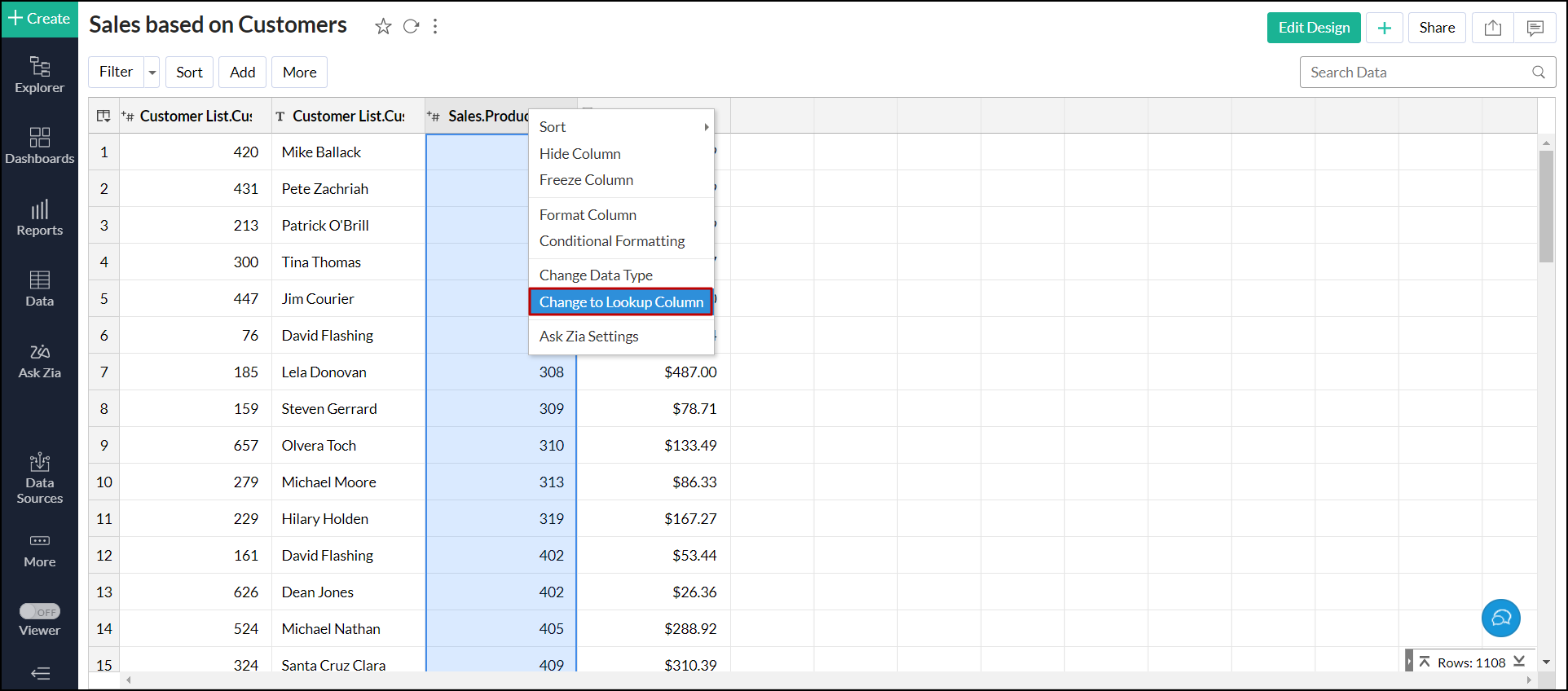 Analytics Plus allows you to rename any column in the query table using an alias name even if the columns are referenced by other views in the workspace.