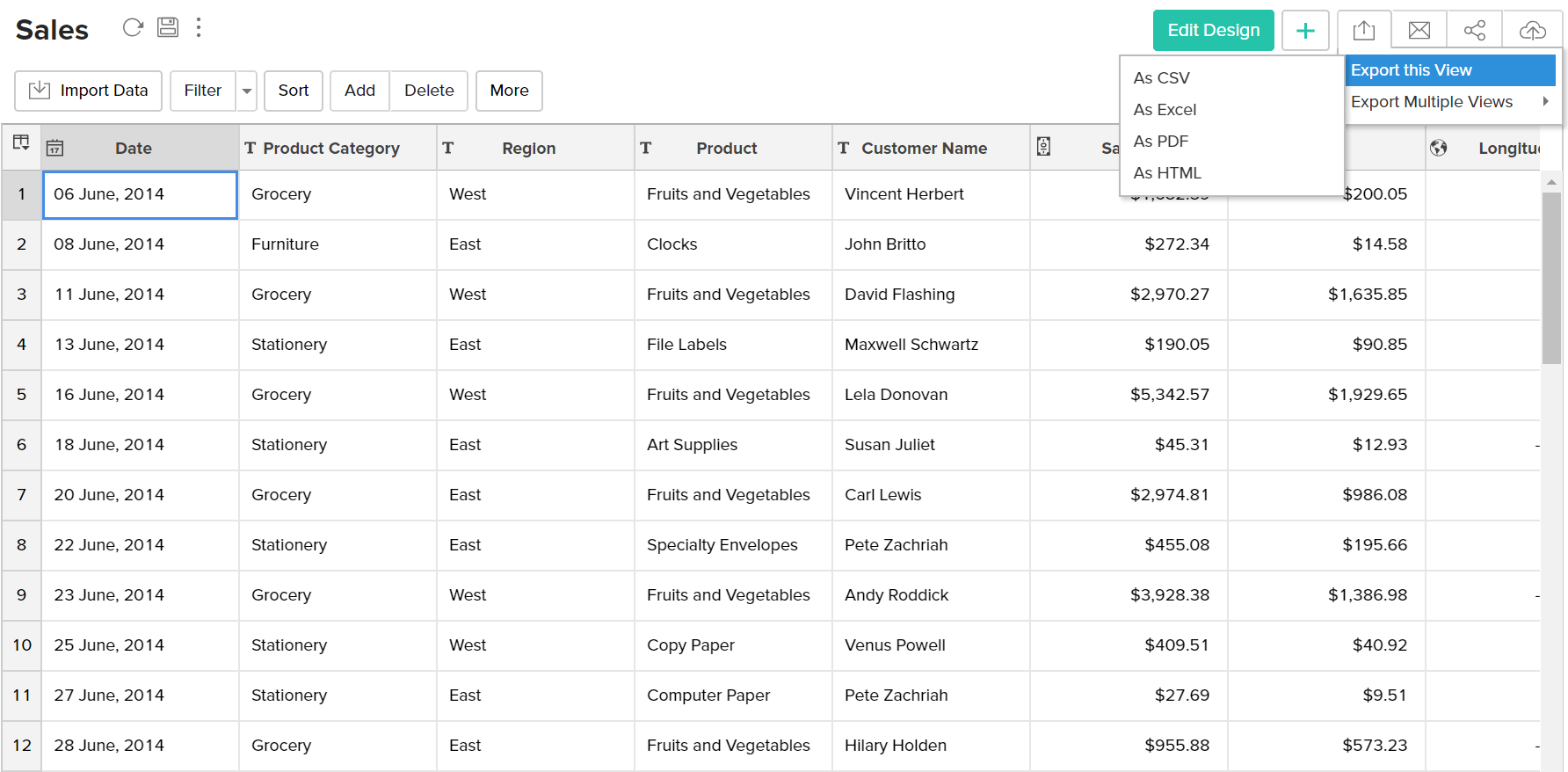 ManageEngine Analytics Plus allows you to export tables that you have into various file formats like CSV, PDF, XLS, or HTML files. To export a table: