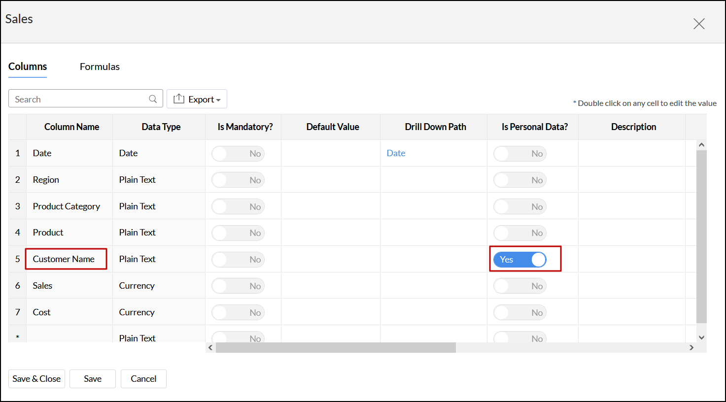Analytics Plus allows you to securely handle the personal information in the table by marking them as Personally Identifiable Information (PII). It could be any information that potentially identifies an individual.