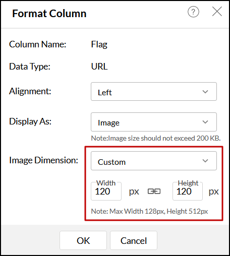 Analytics Plus lets you associate a Plain Text column with a URL column. This enables users to navigate directly to a specific page by clicking the plain text field in a dashboard or report. You can also link an image URL to the Plain Text column, allowing an icon to be displayed alongside the text. This enhances the visual appeal and usability of reports and dashboards.