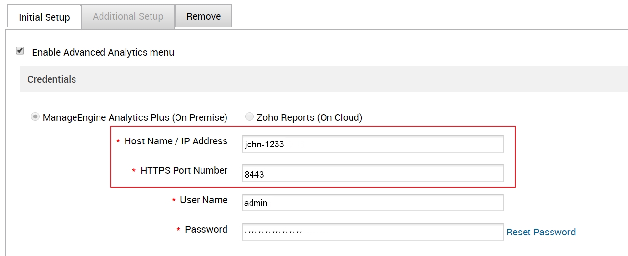 where <hostname of new server> is the hostname of the new Analytics Plus server and <Analytics port> is the port Analytics Plus runs on, in the new server and <Analytics Account port> is the Analytics Plus accounts port in the new server. The default values for these 2 ports are 8443 and 8200 respectively.