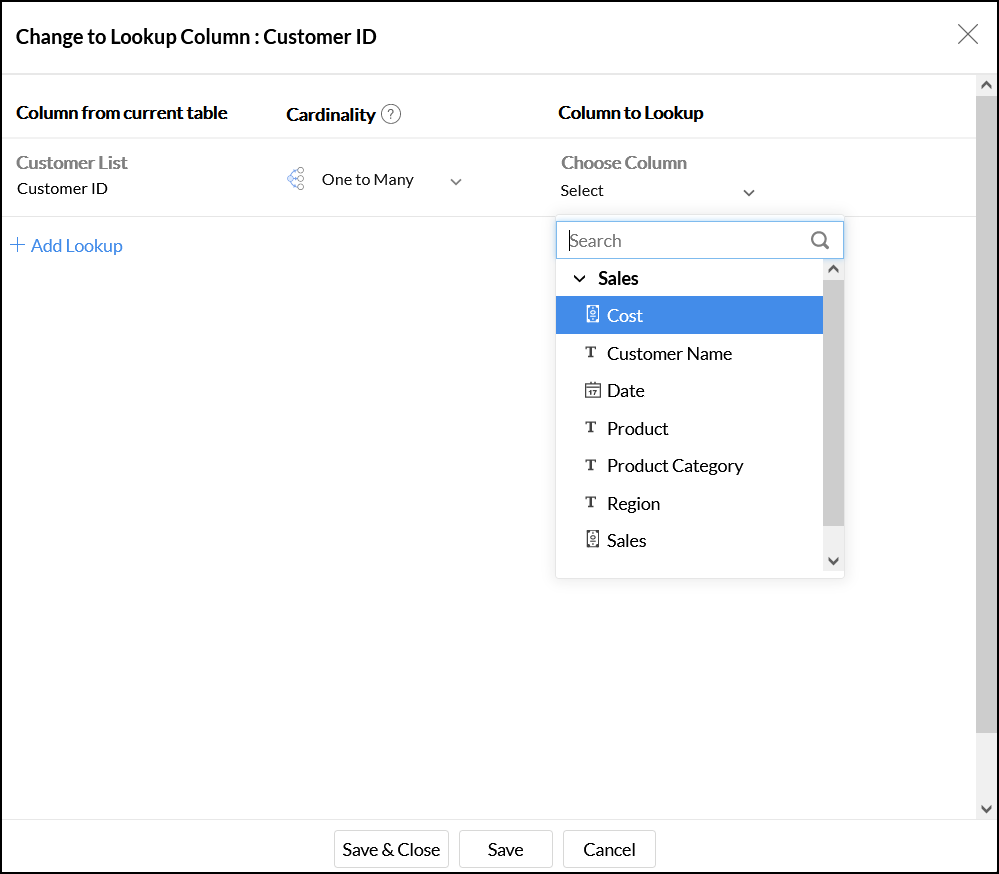 • Open the corresponding table, right click the column header and select the Change to Lookup Column option.