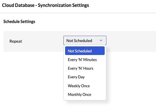 The Synchronization settings pane will open. Choose the interval in which you would like to synchronize your data. You can also schedule a periodic fetch - daily, weekly, or monthly - to import all the data.