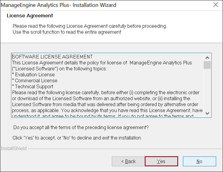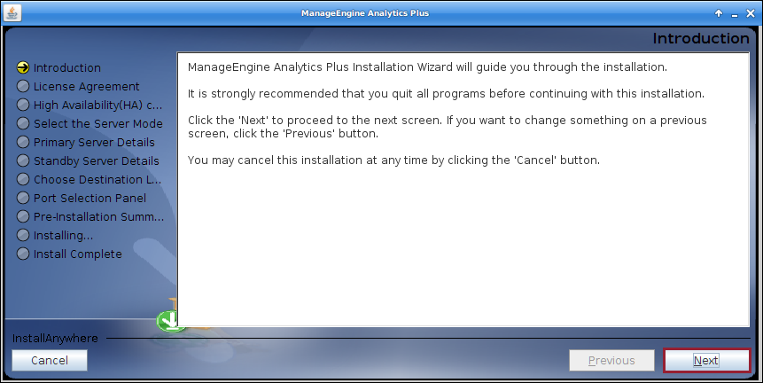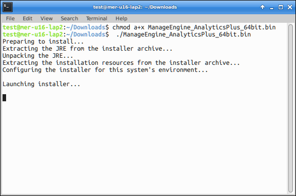 Execute the installation file ./ManageEngine_AnalyticsPlus_64bit.bin