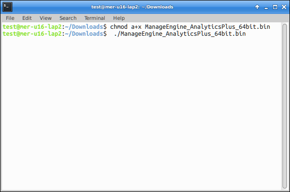 Change the access permissions of the installation file using the following command chmod a+x ManageEngine_Analytics_Plus_x_Linux.bin