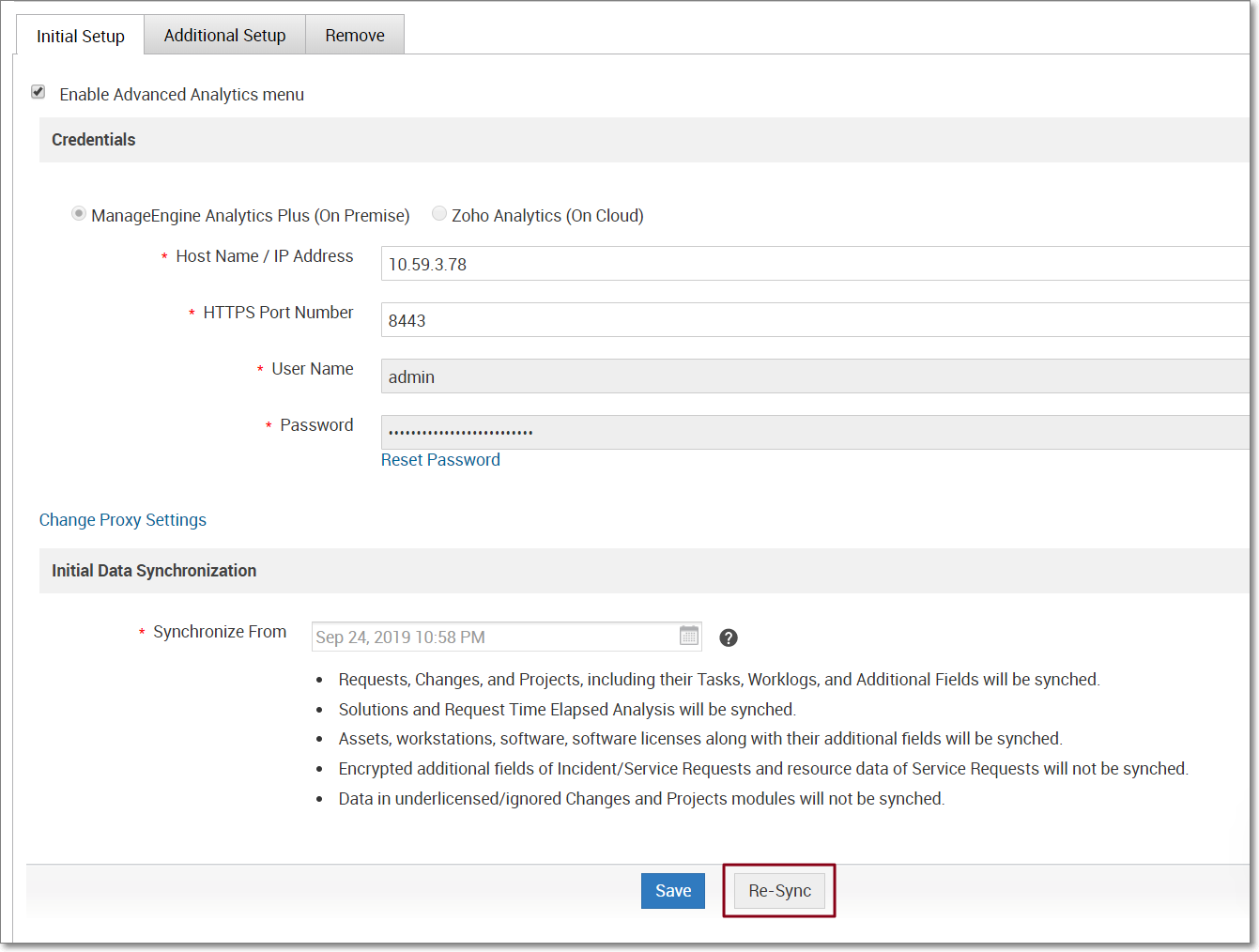 • After modifying the necessary settings, navigate to the Initial Setup tab and click the Re-Sync button.