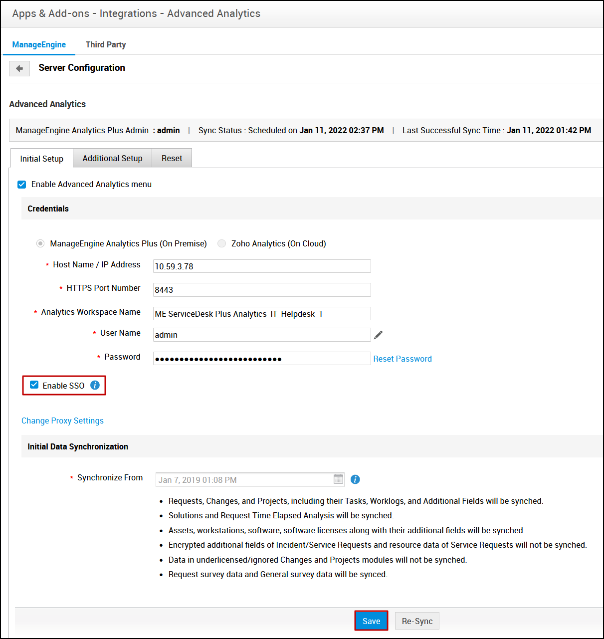 • Restart the Analytics Plus server and trigger the integration from ServiceDesk Plus.