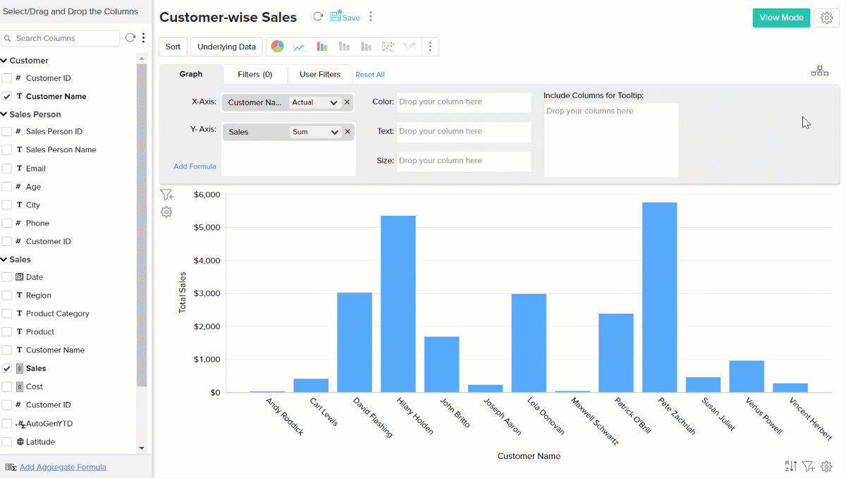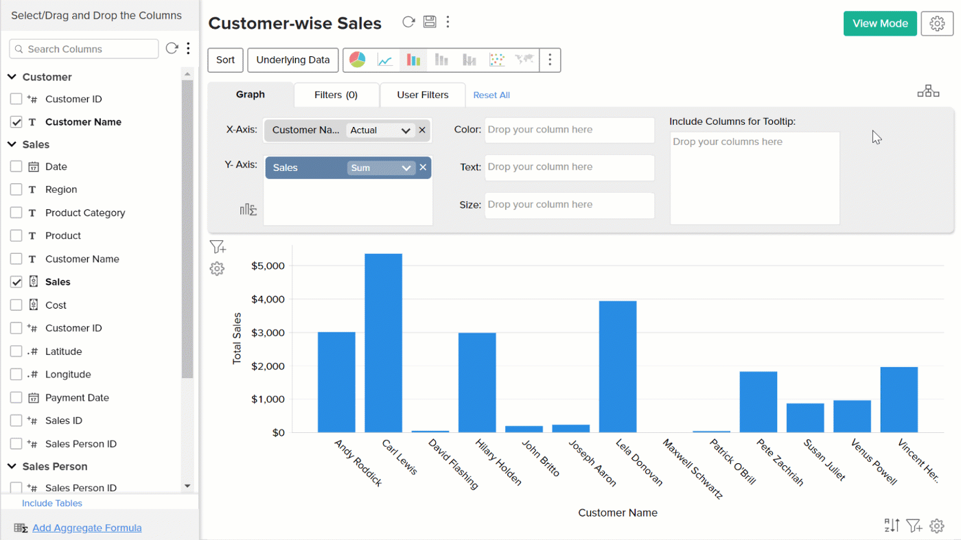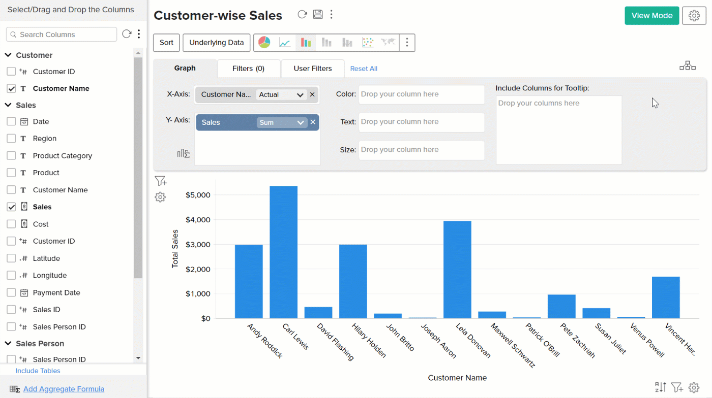 Here's how the Sales by Each Sales Person chart is created using Auto-Join feature: