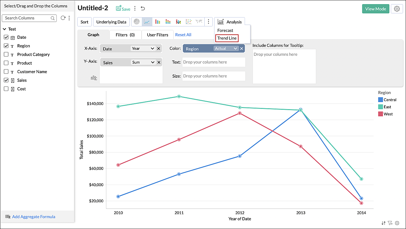 You can also choose to include forecasted data while creating a trend line. To learn more about creating trend lines, click here.
