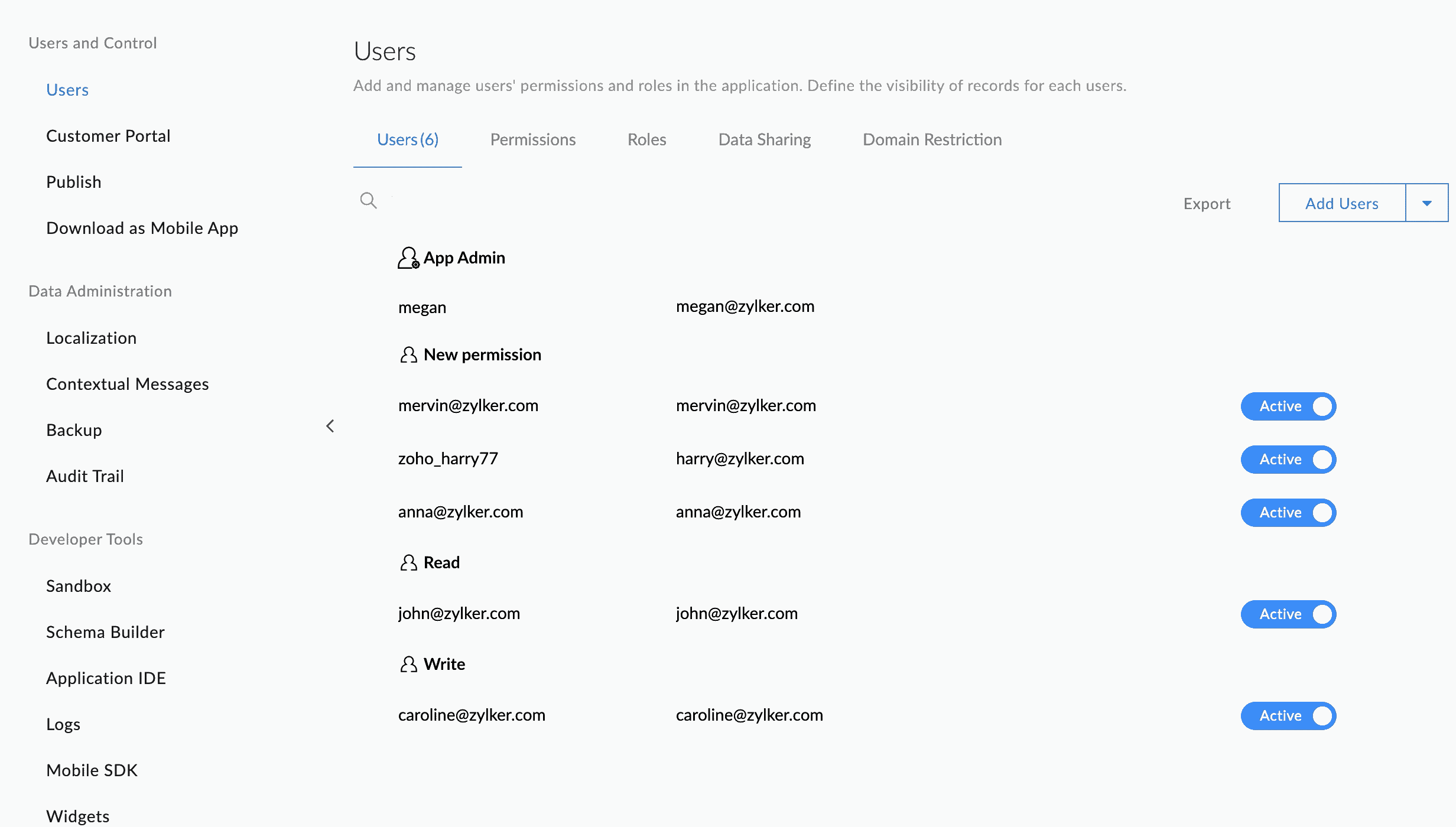 - The users can be assigned three different permissions: Read, Write, and Custom. To configure a custom permission set, click + Add Permission Set.
