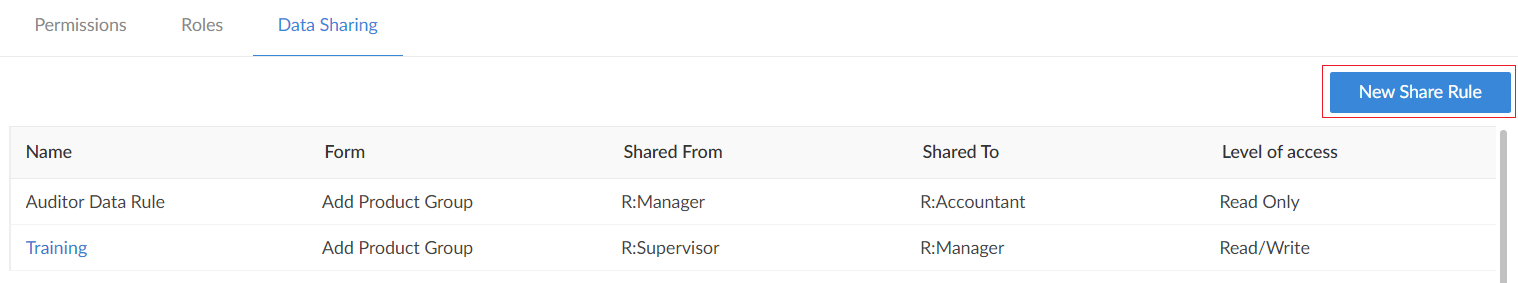 To add a new data sharing rule:- Click New sharing rule in the top-right corner.