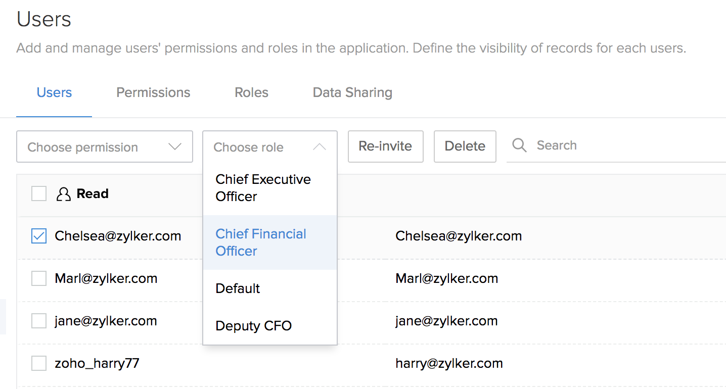 The Choose role option will be displayed. When you click on it, a drop down containing the list of roles will be shown. Select the role that has to be assigned to the user.